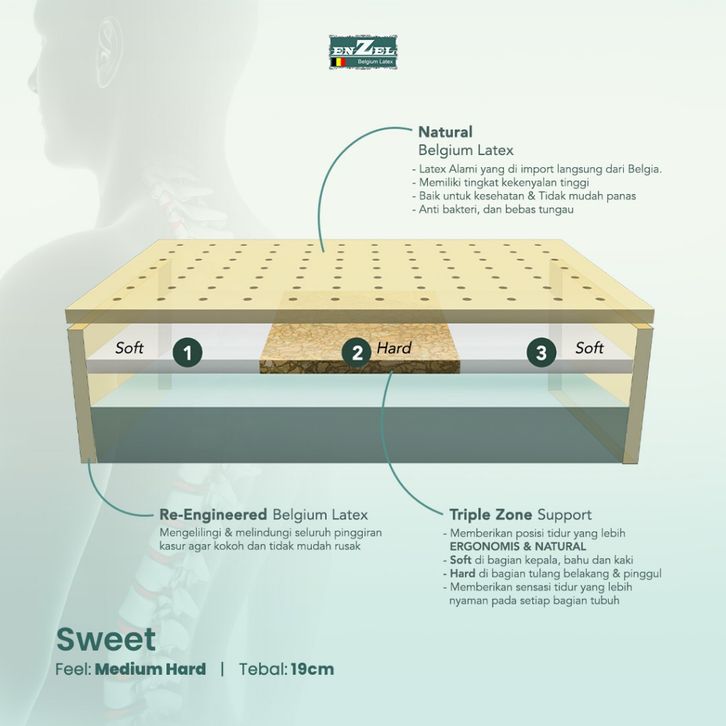 KASUR LATEX ENZEL ORTHOPEDIC UKURAN 200X200 180X200 160X200 120X200 90X200 KASUR KESEHATAN SWEET 19CM BERKUALITAS MURAH
