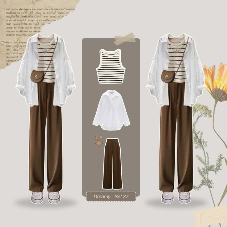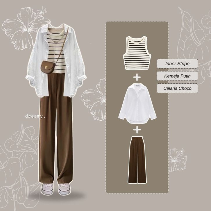 3in1 One Set Korean Style, Outfit Korea, Outfit Wanita, Ullzang // Outfit Cewek Bumi - Inner Stripe Set 37 Outfit Set Ko