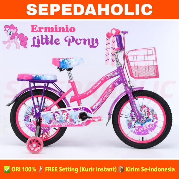 Sepeda Anak Perempuan MINI ERMINIO LITTLE PONY KUDA PONI Ukuran 12 16 18 Inch Keranjang