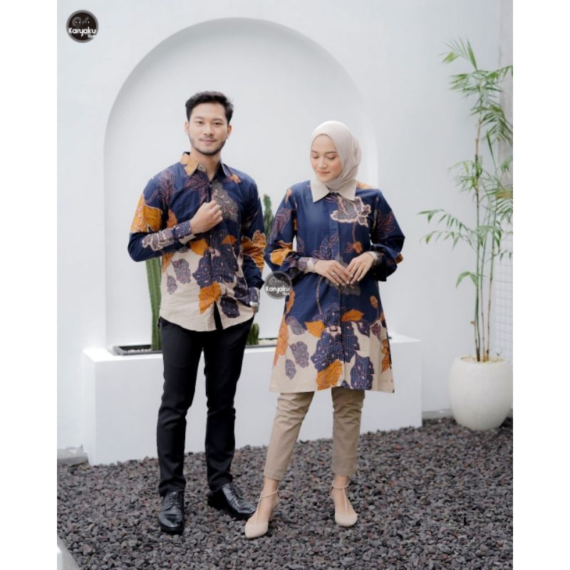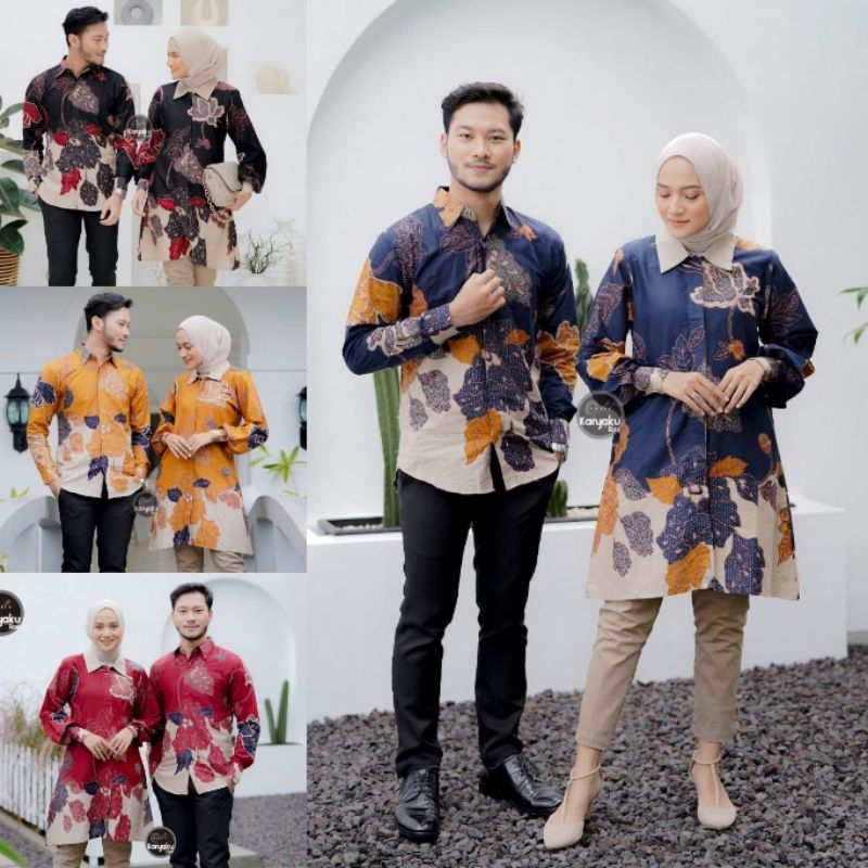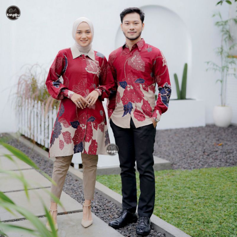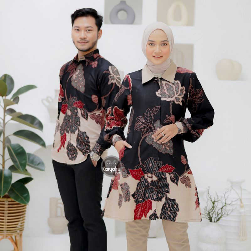 BAJU BATIK COUPLE MODERN KEMEJA TUNIK SET PAKAIAN COUPLE MOTIF MAWAR