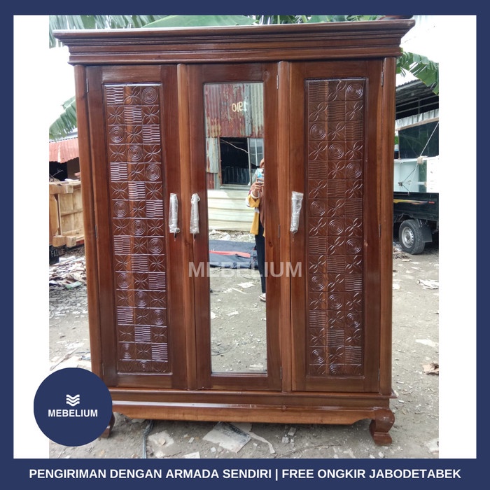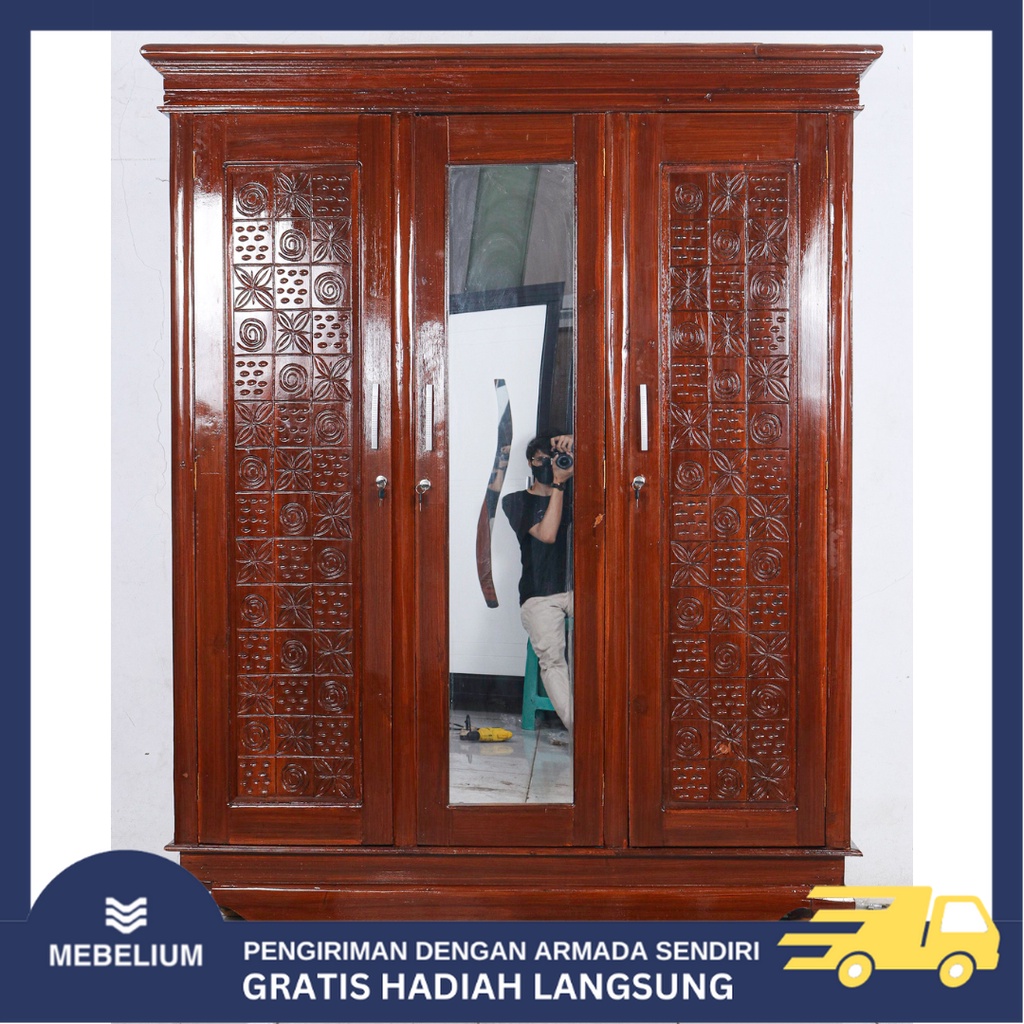 LEMARI PAKAIAN / BAJU RAK HIJAB 3 PINTU BAHAN FULL KAYU JATI ANTI RAYAP MEBELIUM