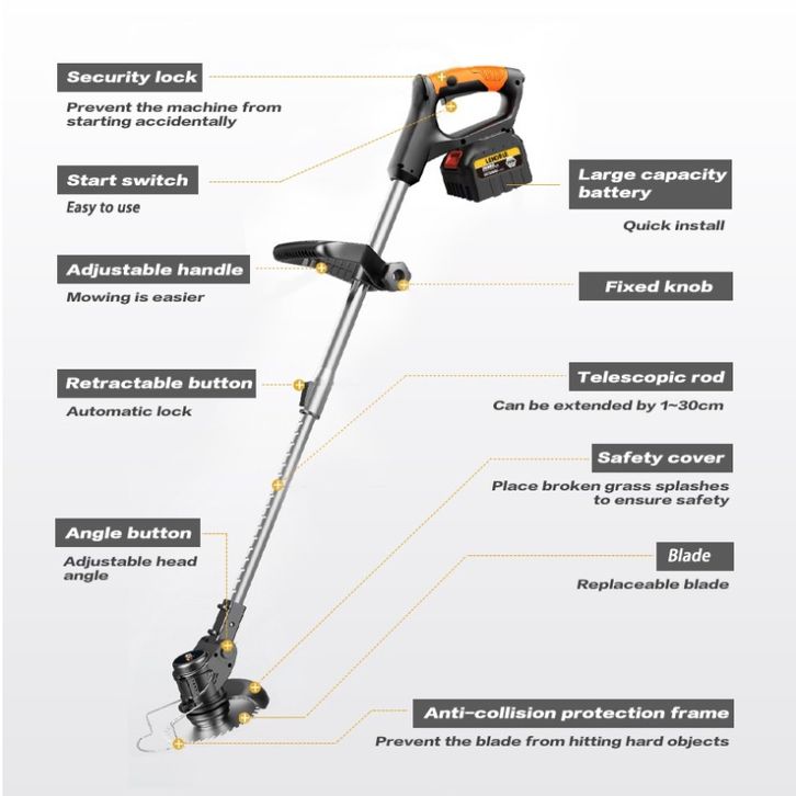 Mesin Potong Rumput Pemotong Rumput Listrik Pemangkas Rumput dengan Baterai Li-ion