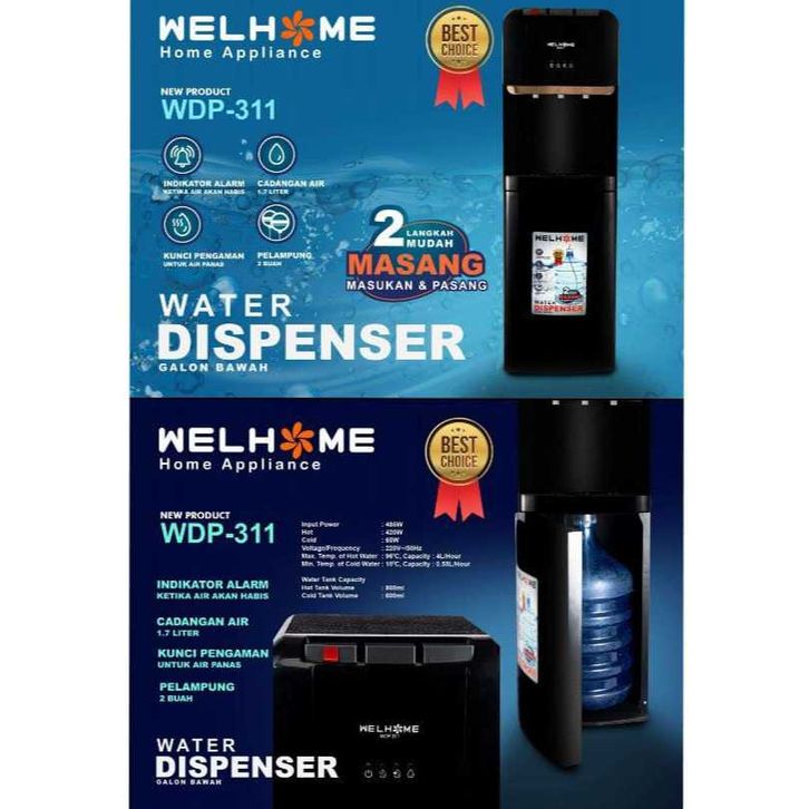 DISPENSER GALON BAWAH WELHOME WDP 311 HOT COLD FRESH 3 KRAN AIR PANAS DINGIN ES LOW WATT MURAH