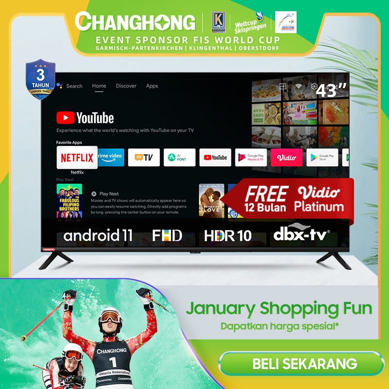 TV CHANGHONG NEW 43 INCH L43G7N ANDROID 11 FRAMELESS SMART TV DIGITAL LED TV FHD -NETFLIX-YOUTUBE-GOOGLE PLAYSTORE