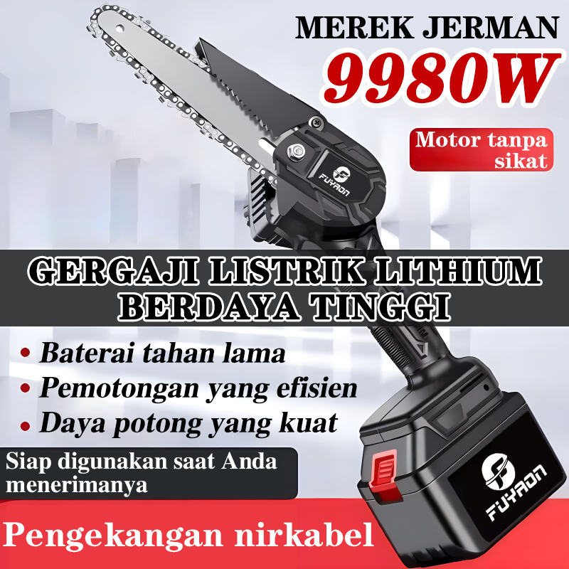 FUYAON Mesin Chainsaw 6 Inch Cordless Chainsaw 36V Gergaji Baterai Gergaji Rantai Elektrik Mini 2 baterai Gergaji Listri