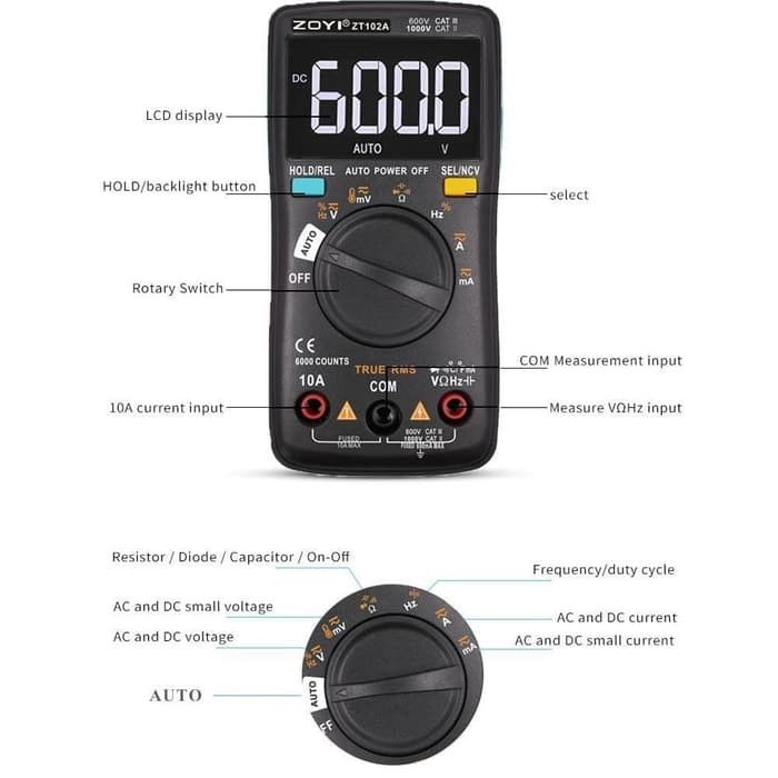 ZOYI ZT102A Upgrade Auto Multimeter Digital Avometer Multitester NCV Original Protect
