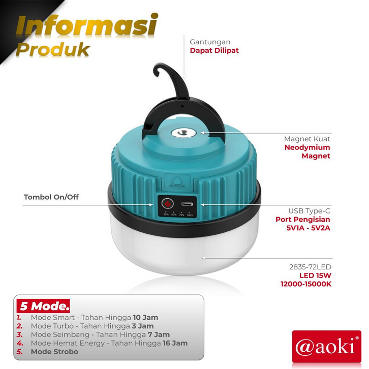 Lampu Emergency Led Aoki Lampu Gantung Portable Lampu Outdoor Camping