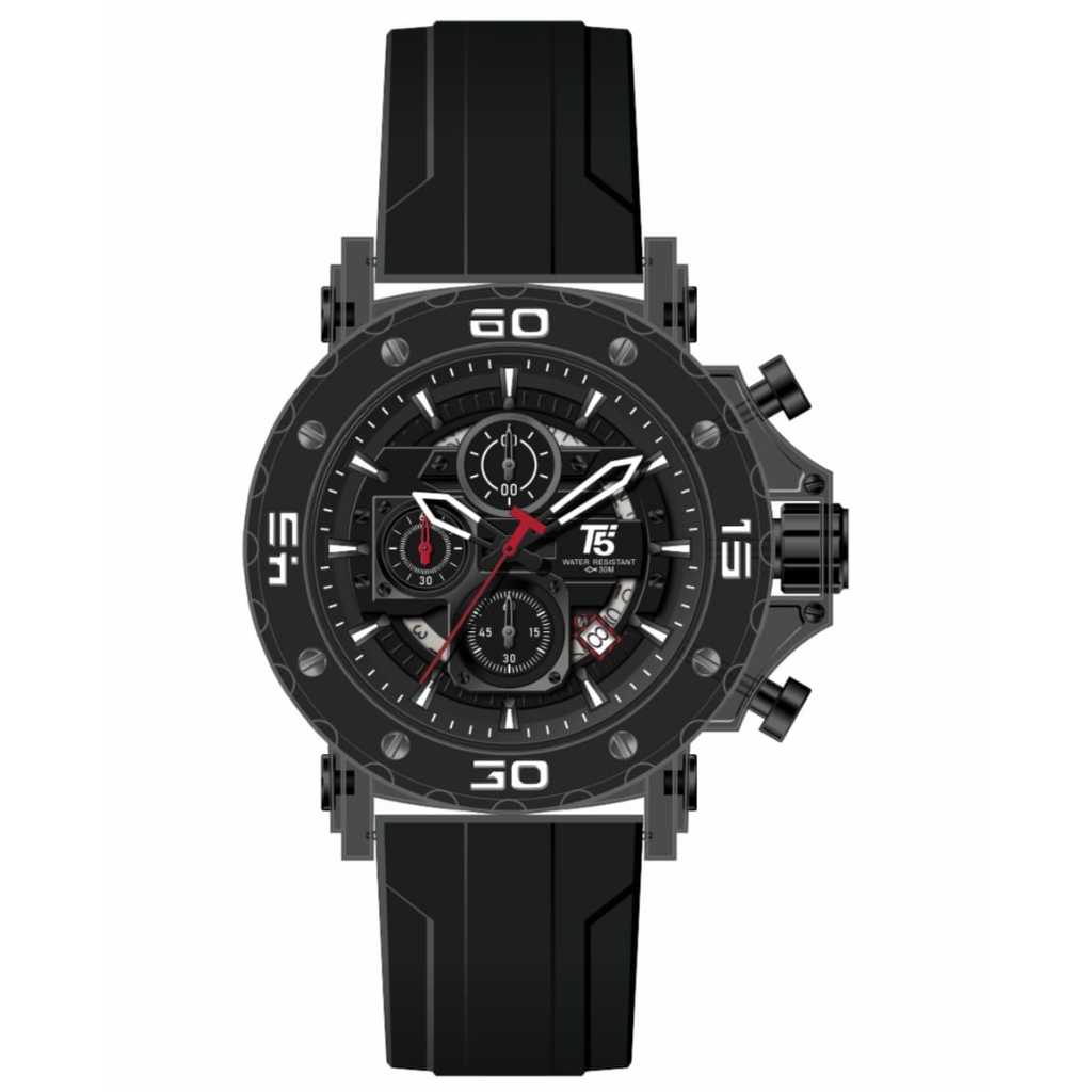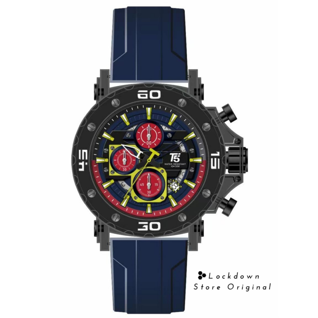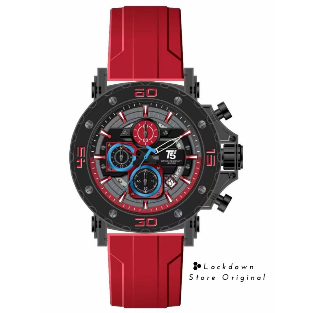 Jam Tangan Pria T5 H 4043G Rubber Original Chronograph Aktif Black Acrylic Case Tanggal Aktif Free Box Ori & Baterai