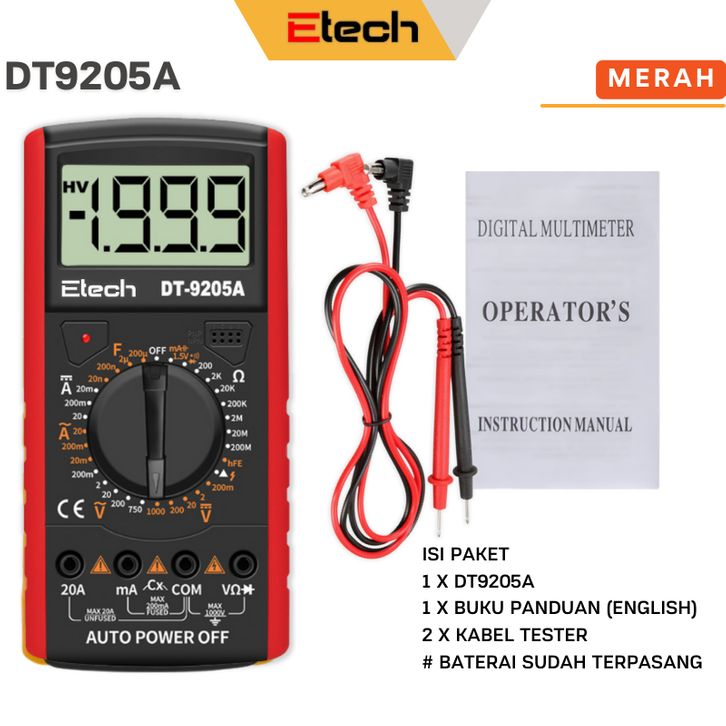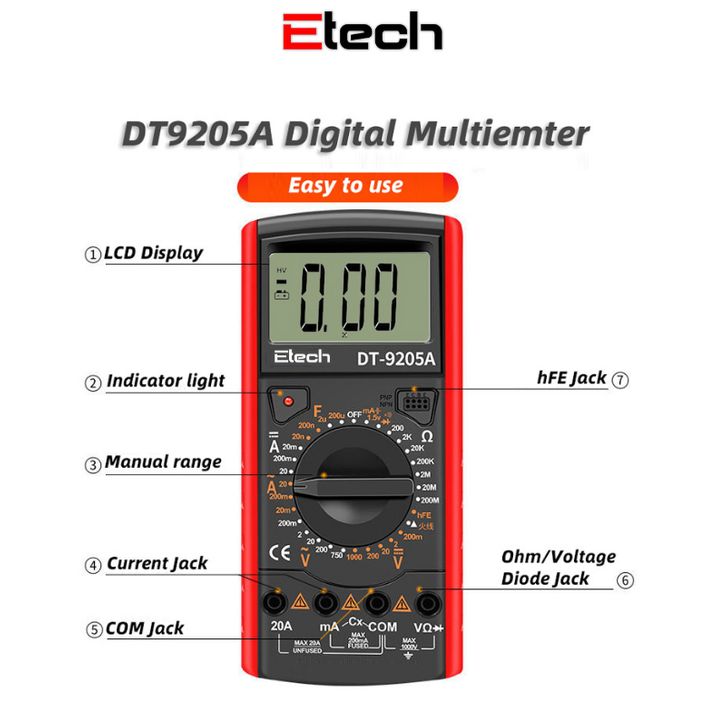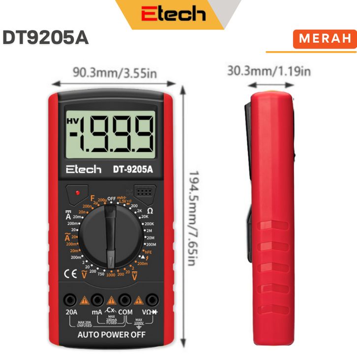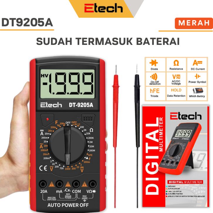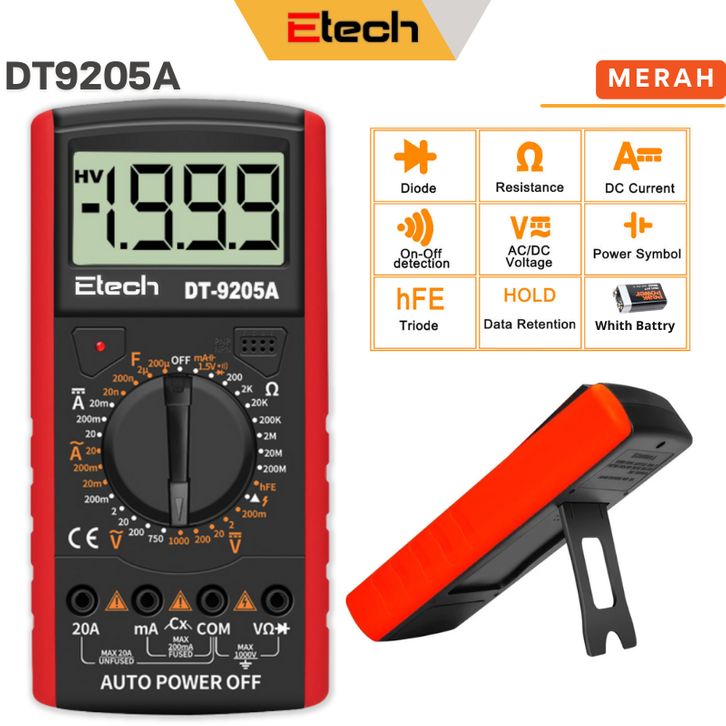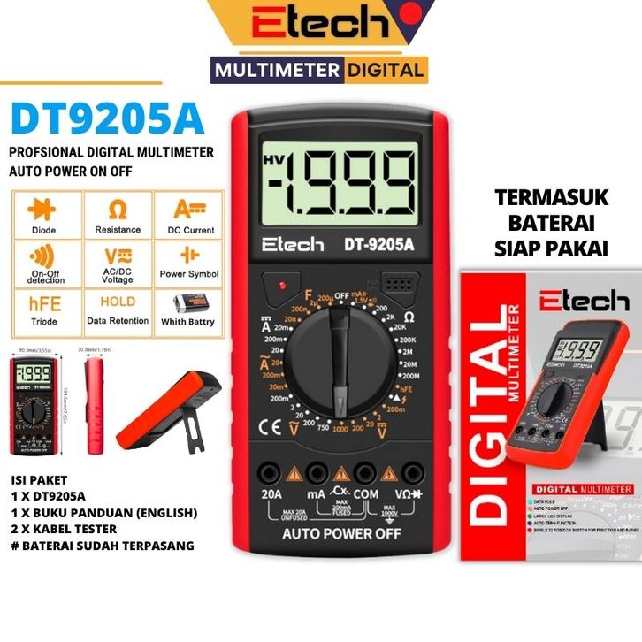DT9205A Multimeter Digital Professional Voltage Tester AC DC 1000V 20A Ammeter Voltmeter Resistansi Kapasitansi Penguji