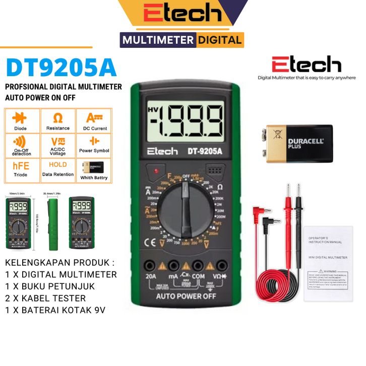 MULTITESTER DIGITAL MULTIMETER AVOMETER DT-9205A WINNER DT-9205A Multimeter Digital Paket Lengkap Dan Murah Digital Mult