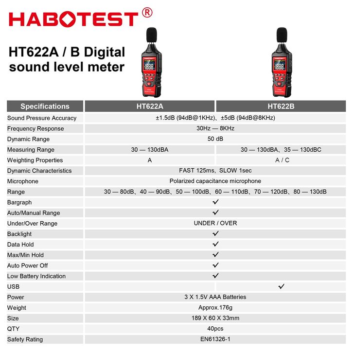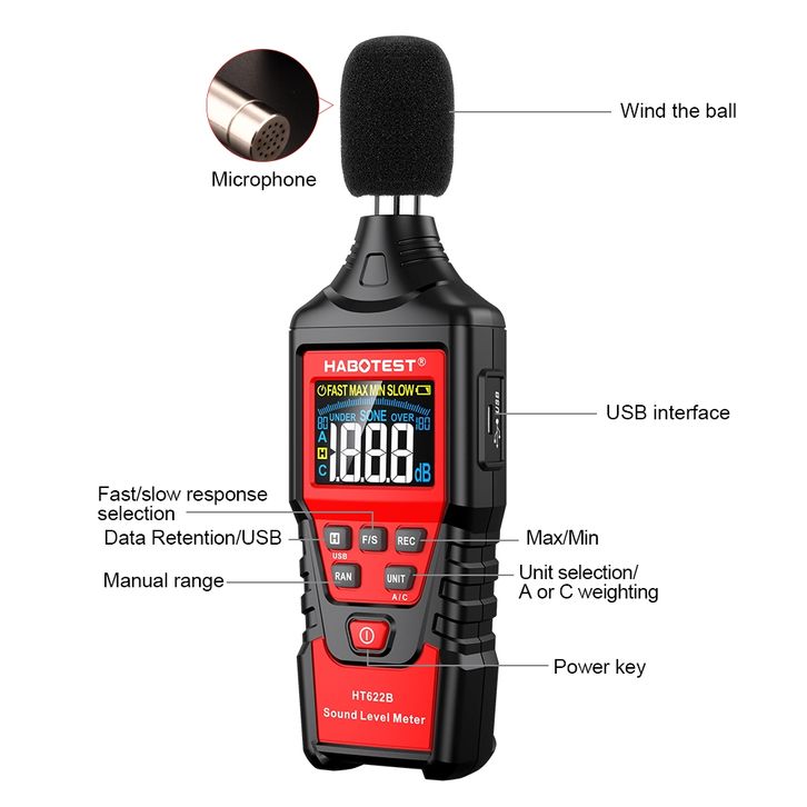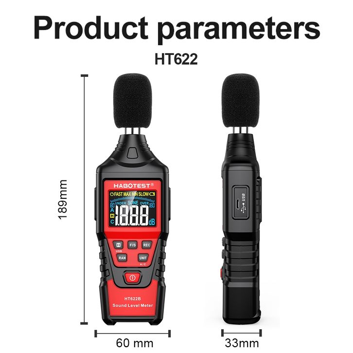 HABOTEST HT622 Digital Sound Level Meter Kebisingan Meter Logger 30 ~ 130dBA Digital DB Meter Kebisingan Alat Ukur