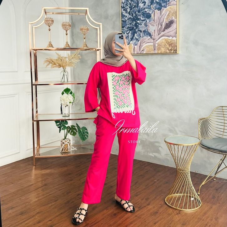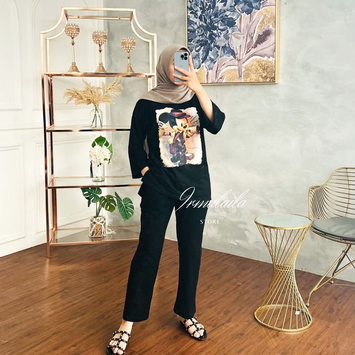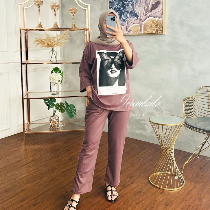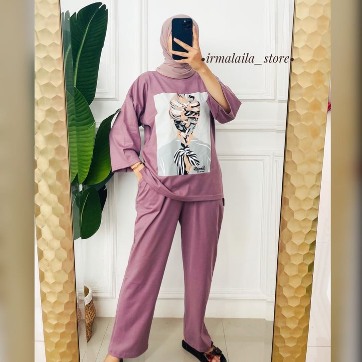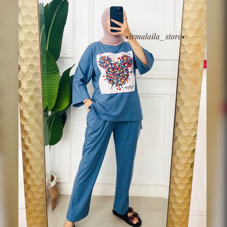 One Set Wanita Kekinian Kaos Oversize Wanita Premium