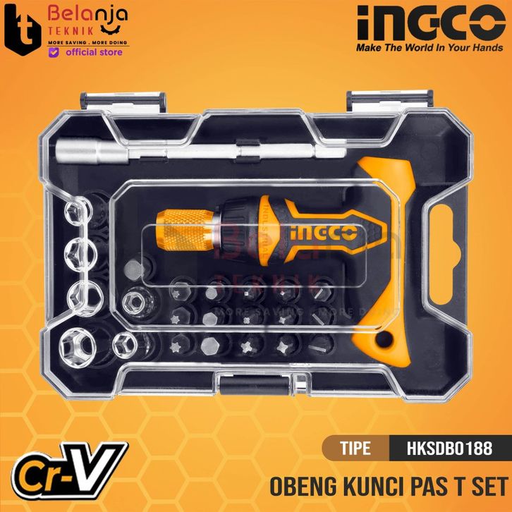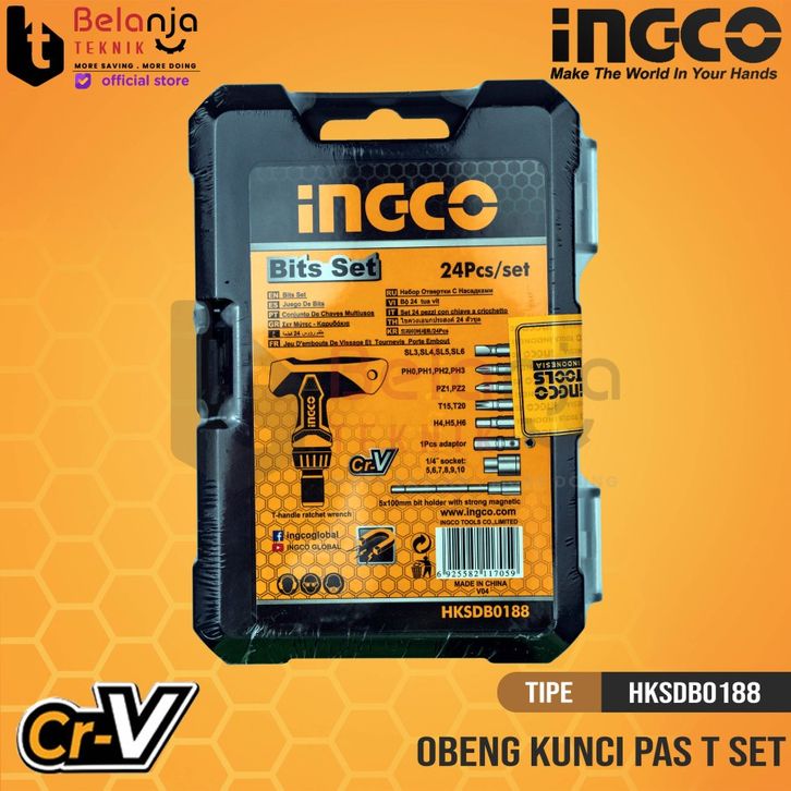 Ingco T Handle Wrench Screwdriver 24 Pcs Obeng Sock Sok Set HKSDB0188