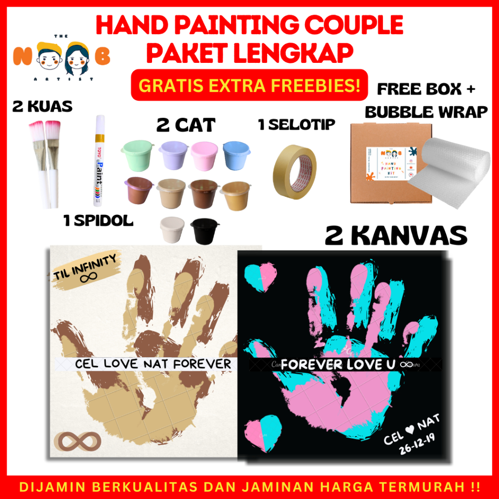 HAND PAINTING KIT CANVAS BY THE NOOB ARTIST | KANVAS CAP TANGAN COUPLE | CANVAS 20X20 CM | KANVAS LUKIS TANGAN COUPLE