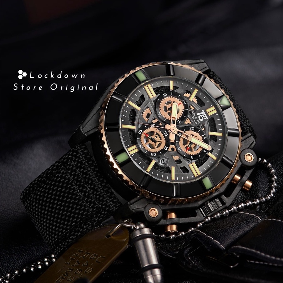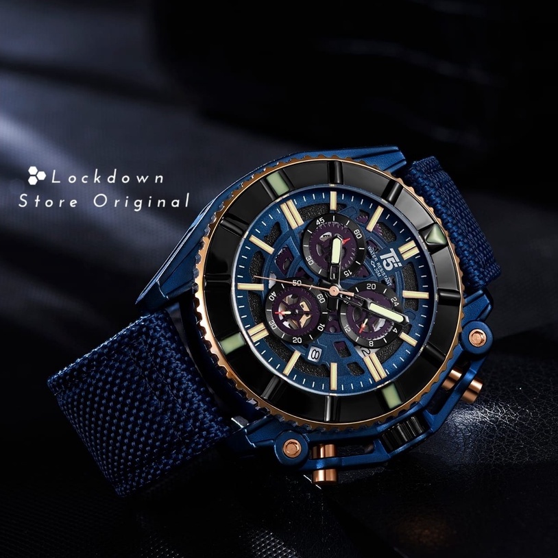 Jam Tangan Pria T5 H 3797G Kanvas Original Chronograph Aktif Tanggal Aktif Free Box Ori & Baterai