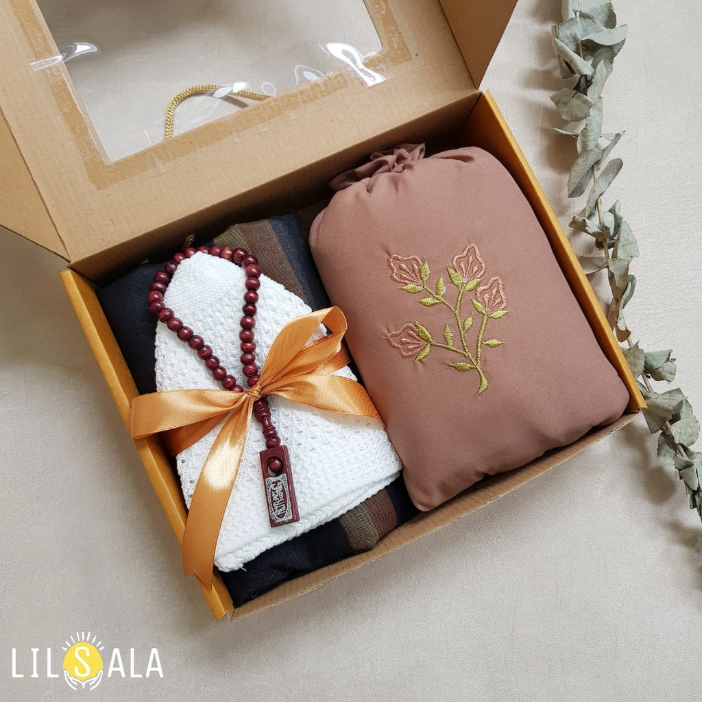 PAKET MUKENA DAN SARUNG PECI DEWASA PACKING BOX KADO GURU, KADO NIKAH