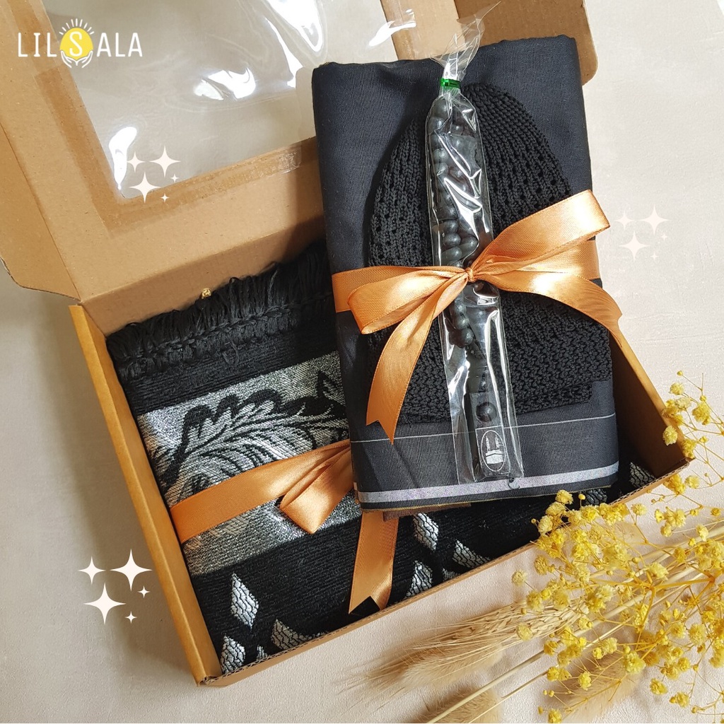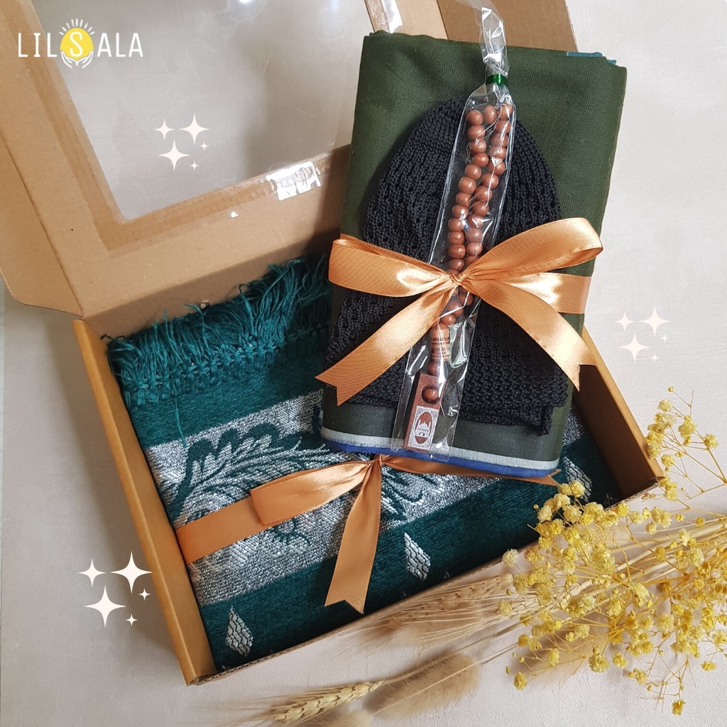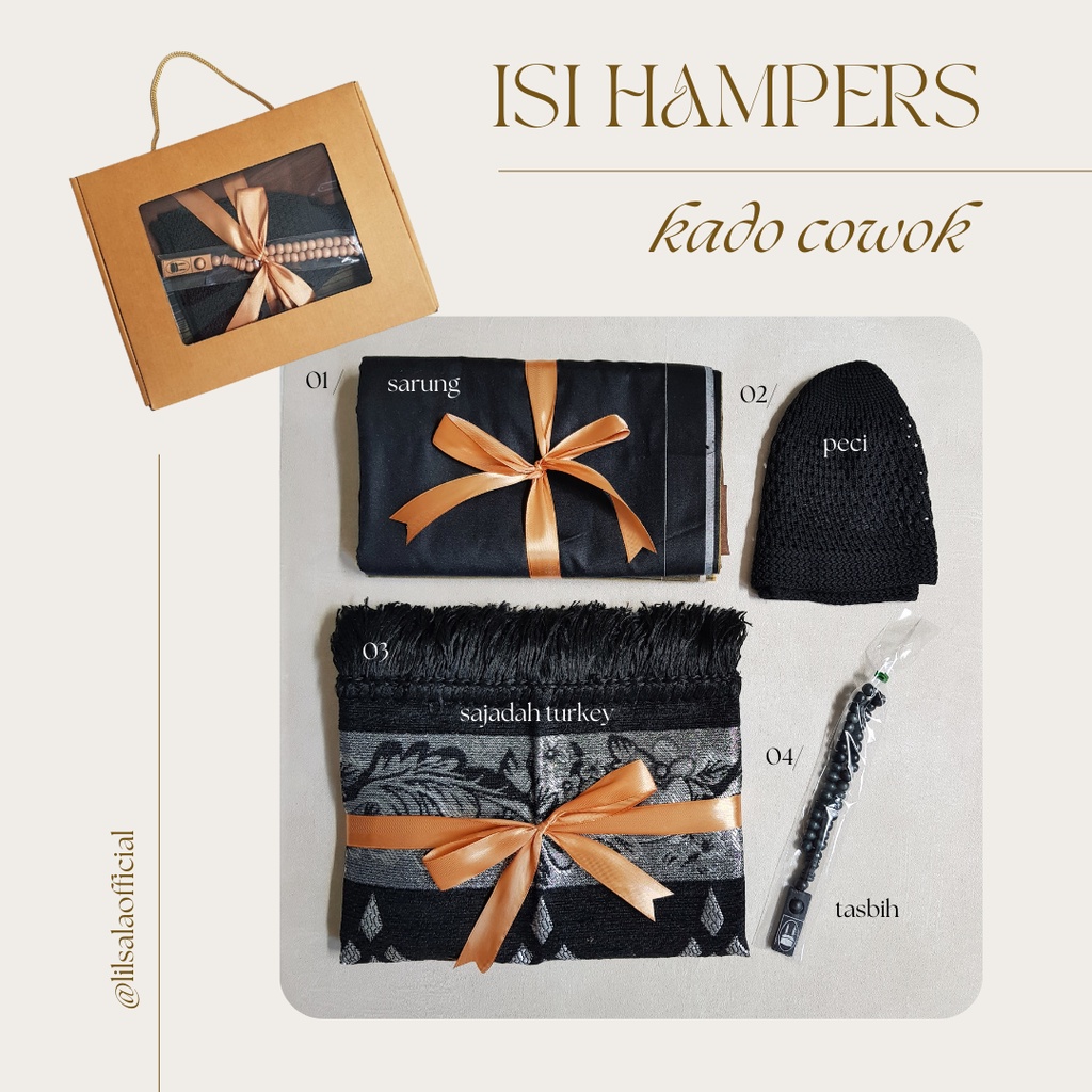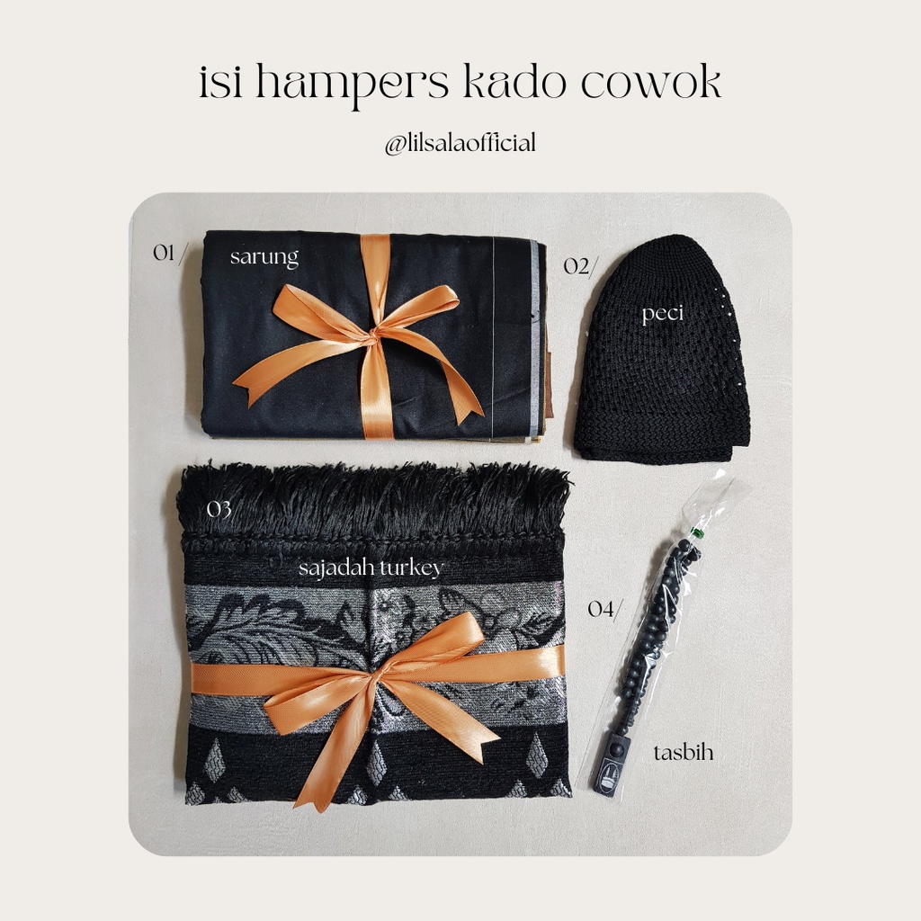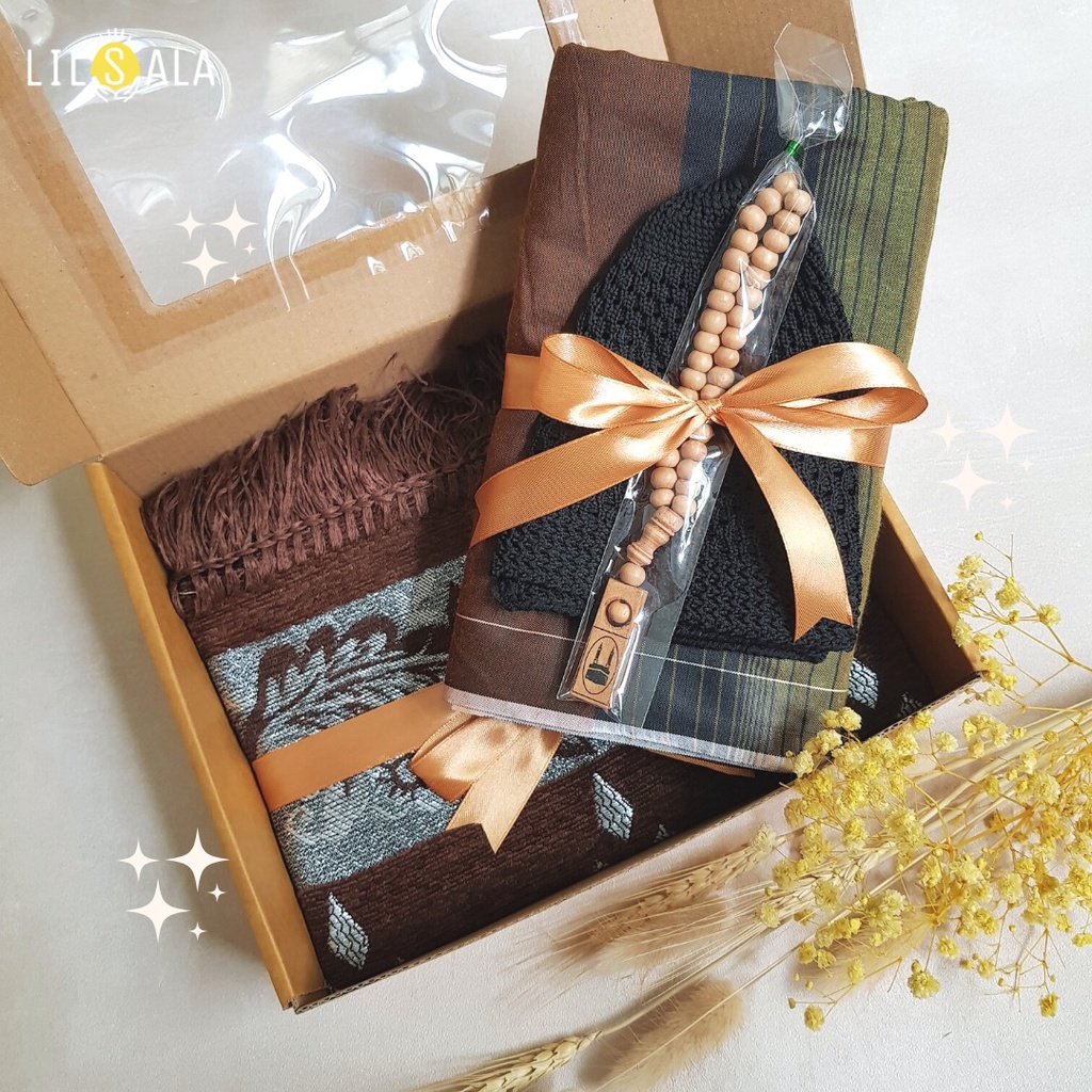 HAMPERS KADO COWOK PAKET SAJADAH, SARUNG, PECI, TASBIH PACKING BOX KADO HADIAH PARCEL