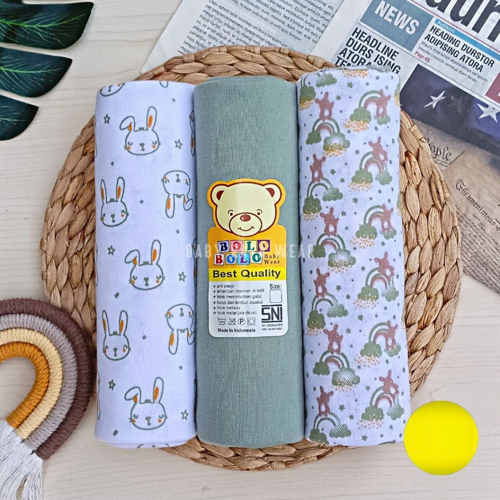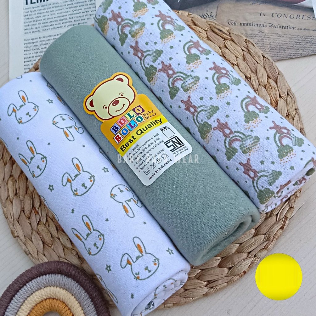 Serian Hijau - 3 pcs Bedong Bayi Bahan Kaos HIJAU SERIES 110 x 90 cm Merk SNI Bolo - Bolo