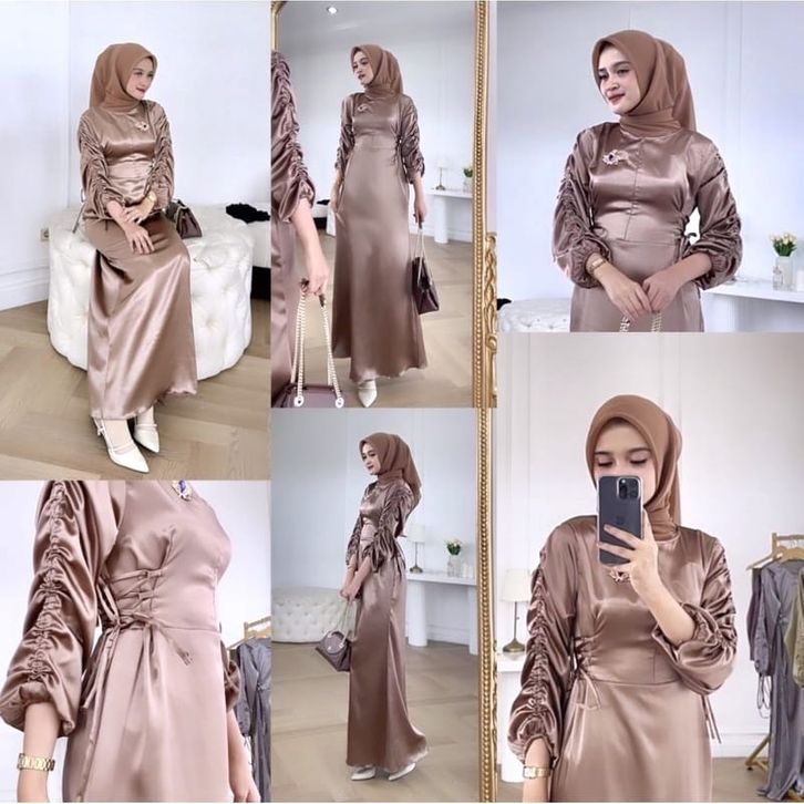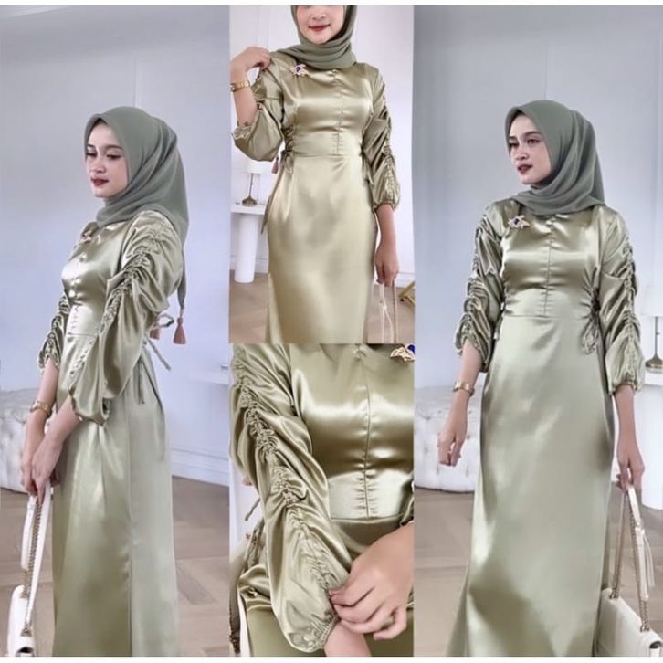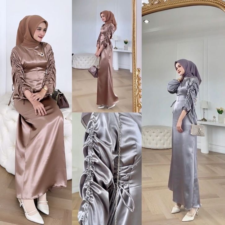 Gamis Lebaran Terbaru 2026 Bahan Silk Dry//Gamis Serut Kekinain//Dress Satin Premium//Dress Kondangan Simpel Elegan