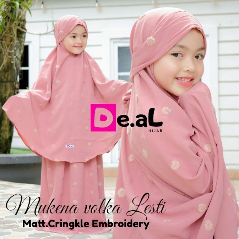 (ORI DE.AL) MUKENAH VOLKA LESTI MUKENAH ANAK CRINKLE EMBROIDERY MUKENAH LESTI ANAK