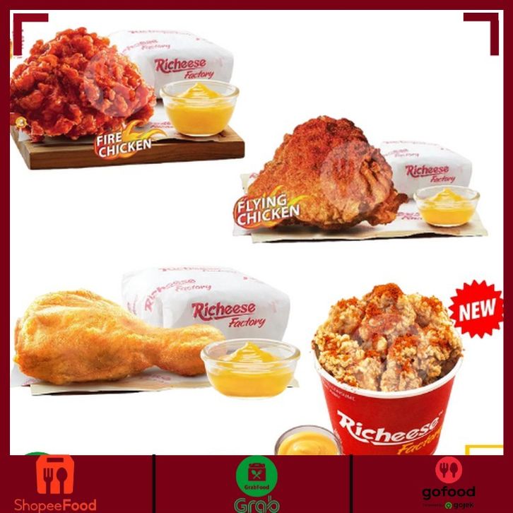 Amo Cola Chicken, Combo Amo Cola Chicken, Chicken Bites Amo Cola, Amo Cola Friend Fries, Amo Cola Nugget 6pcs, Loaded Fries Chicken Bites, Loaded Fries Chicken Katsu, Loaded Fries Richeese Factory Nugget, Nugget Non Spicy 6 pcs, Nugget Spicy 6 pcs, Nugget Non Spicy 9 pcs, Nugget Spicy 9 pcs, Combo 1 CD Music Fire Chicken, Combo 1 CD Music Flying Chicken, Combo 1 CD Music Richicken, Combo 2 CD Music Fire Chicken, Combo 2 CD Music Flying Chicken, Combo 2 CD Music Richicken, Kids Meal Fire Chicken, Kids Meal Flying Chicken, Kids Meal Richeese Factory Nugget, Kids Meal Richicken, Combo 1 CD Music Honey Fire Chicken, Combo 1 CD Music Honey Flying Chicken, Combo 1 CD Music Honey Richicken, Combo 2 CD Music Honey Fire Chicken, Combo 2 CD Music Honey Flying Chicken, Hot Sausage, Combo 2 CD Music Honey Richicken, Combo Hampers 1, Combo Hampers 2, Combo Super Hot Deal 1, Combo Super Hot Deal 2, Combo Fire Chicken + Cheesy Cream Soup, Combo Ber-4 Whole Flying Chicken, Combo Fire Chicken + Perkedel, Nugget Bubble Crumb Selection Series 250gr, Nugget Classic Recipe Series 250gr, Nugget Flying Chicken Gold Series 500gr, Nugget Bubble Gold Series 500gr, Smoke Bratwurst 360gr, Drum Stick Fire Chicken 2pcs, Fire Chicken 3pcs, Fire Chicken 5pcs, Fire Chicken Whole, Combo 4 Fire Wings, Combo 1 Fire Chicken, Combo Duo Fire Chicken, Combo Fire Drum Stick, Combo Cheese Crackling, Fire Wings 3pcs, Fire Wings 6pcs, Fire Chicken 1pcs, Fire Chicken 8pcs, Drum Stick Flying Chicken 2pcs, Flying Chicken 1pcs, Flying Chicken 3pcs, Flying Chicken 5pcs, Flying Chicken 8pcs, Flying Chicken Whole, Combo 2 Flying Chicken Personal, Combo 1 Flying Chicken Personal + Perkedel, Combo 1 Flying Chicken Personal + Cheesy Cream Sou, Drum Stick Richicken 2pcs, Richicken 1pcs, Richicken 3pcs, Richicken 5pcs, Richicken 8pcs, Combo 1 Richicken + Perkedel, Combo 1 Richicken + Cheesy Cream Soup, Combo 2 Richicken, Big Eight Flying Chicken / Richicken, Big Eight Fire Chicken, Big Five Fire Chicken, Big Five Flying Chicken / Richicken, Big Four Flying Chicken / Richicken, Big Four Fire Chicken, Combo Flying Chicken Whole, Combo Fire Chicken Whole, BBQ Sauce Lev 0, BBQ Sauce Lev 1, BBQ Sauce Lev 2, BBQ Sauce Lev 3, BBQ Sauce Lev 4, BBQ Sauce Lev 5, Rice Ala Carte, Perkedel, Cheesy Cream Soup, Cheese Crackling, Fire French Fries, French Fries, Fire Wedges, Chicken Bites Spicy, Chicken Bites Non Spicy, Combo Chicken FB-1, Combo Chicken FB-2, Fire Burger Beef, Fire Burger Chicken, Combo Fire Burger Beef, Combo Fire Burger Chicken, Combo Fries Fire Burger Beef, Combo Fries Fire Burger Chicken, Fire Burger Lite, Combo Chicken RB-1, Combo Chicken RB-2, Rich Burger - Beef, Rich Burger Sauce, Rich Burger - Chicken, Combo Rich Burger - Beef, Combo Rich Burger - Chicken, Combo Fries Rich Burger - Beef, Combo Fries Rich Burger - Chicken, Rich Burger Lite, Pink Lava Medium, Pink Lava Large, Pink Lava 1L, Peach Osmanthus Medium, Peach Osmanthus Large, Ricebowl Chicken Katsu, Ricebowl Chicken Bites, Big Breakfast Chicken Katsu + Perkedel