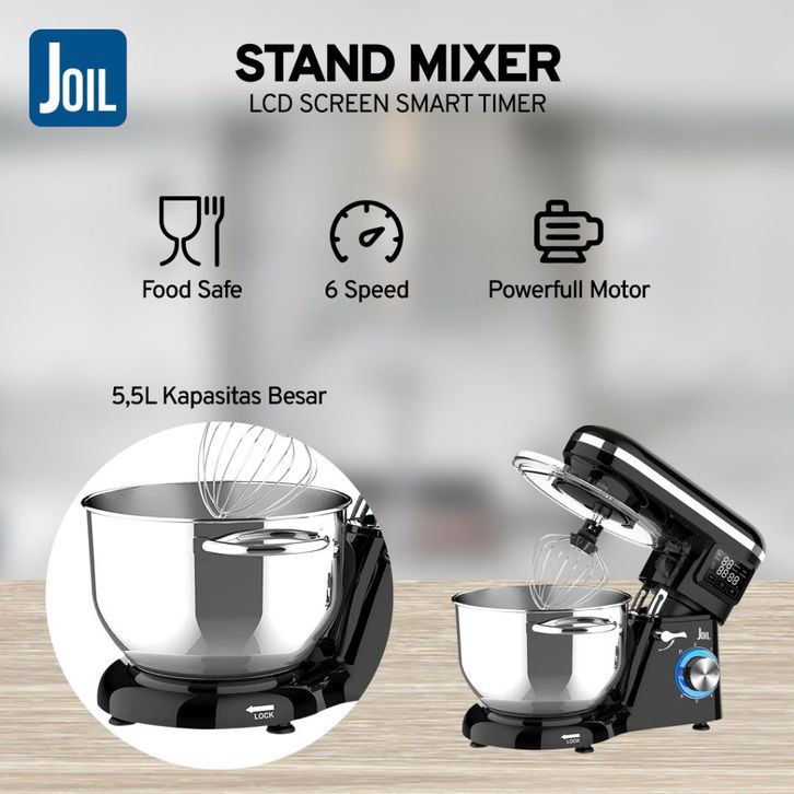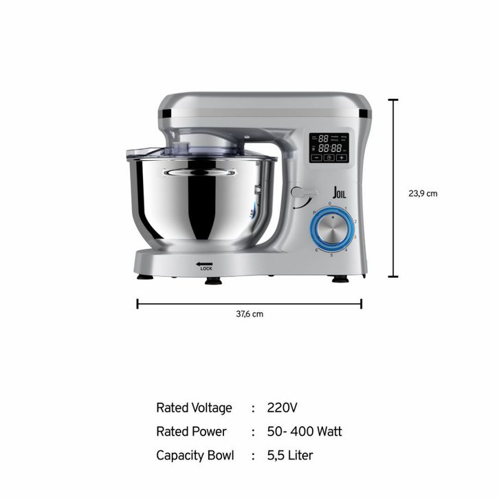 STAND MIXER UNTUK KUE & ROTI JOIL MIXPRO M1 5.5L: TIMER OFF LOW WATT 6 SPEED TERLARIS