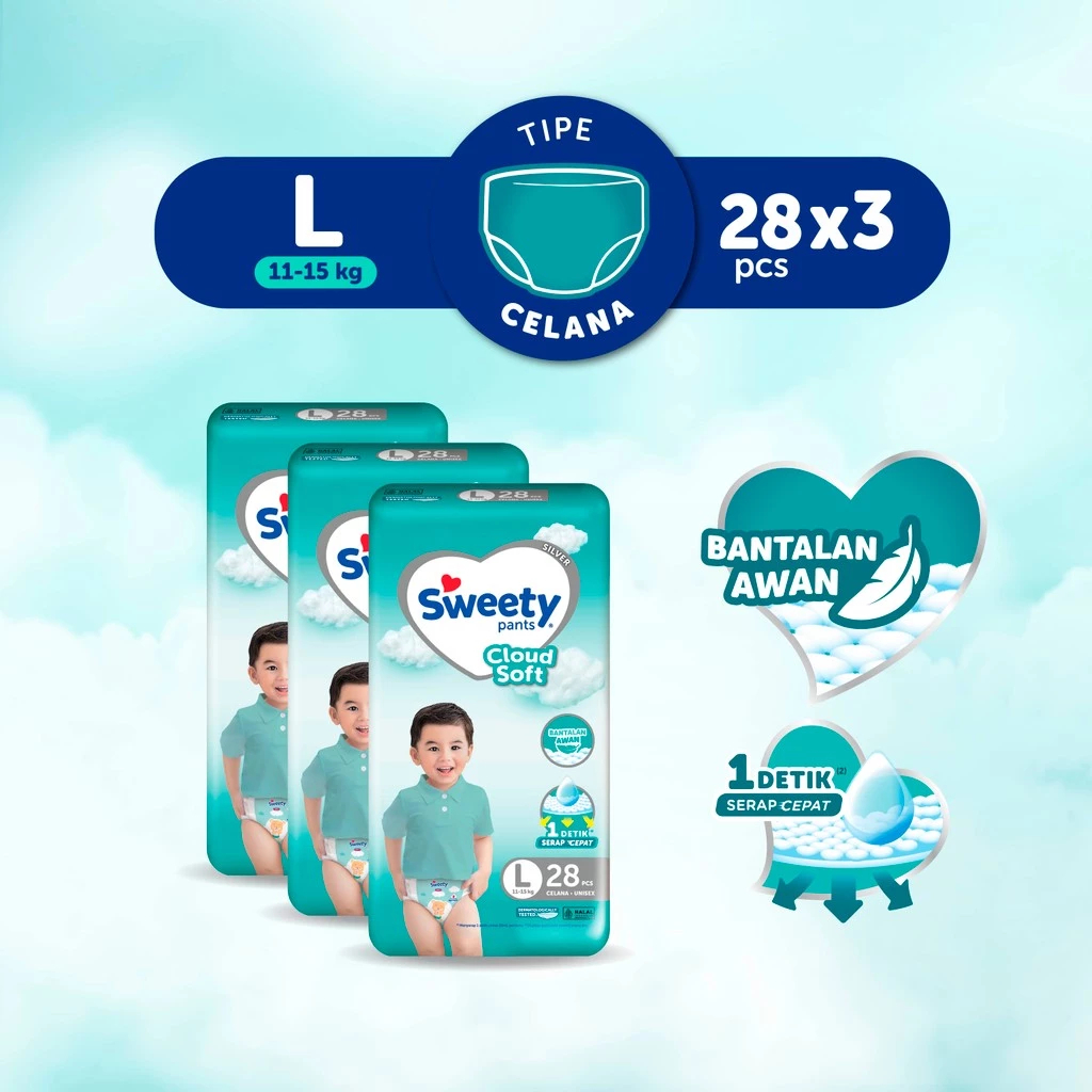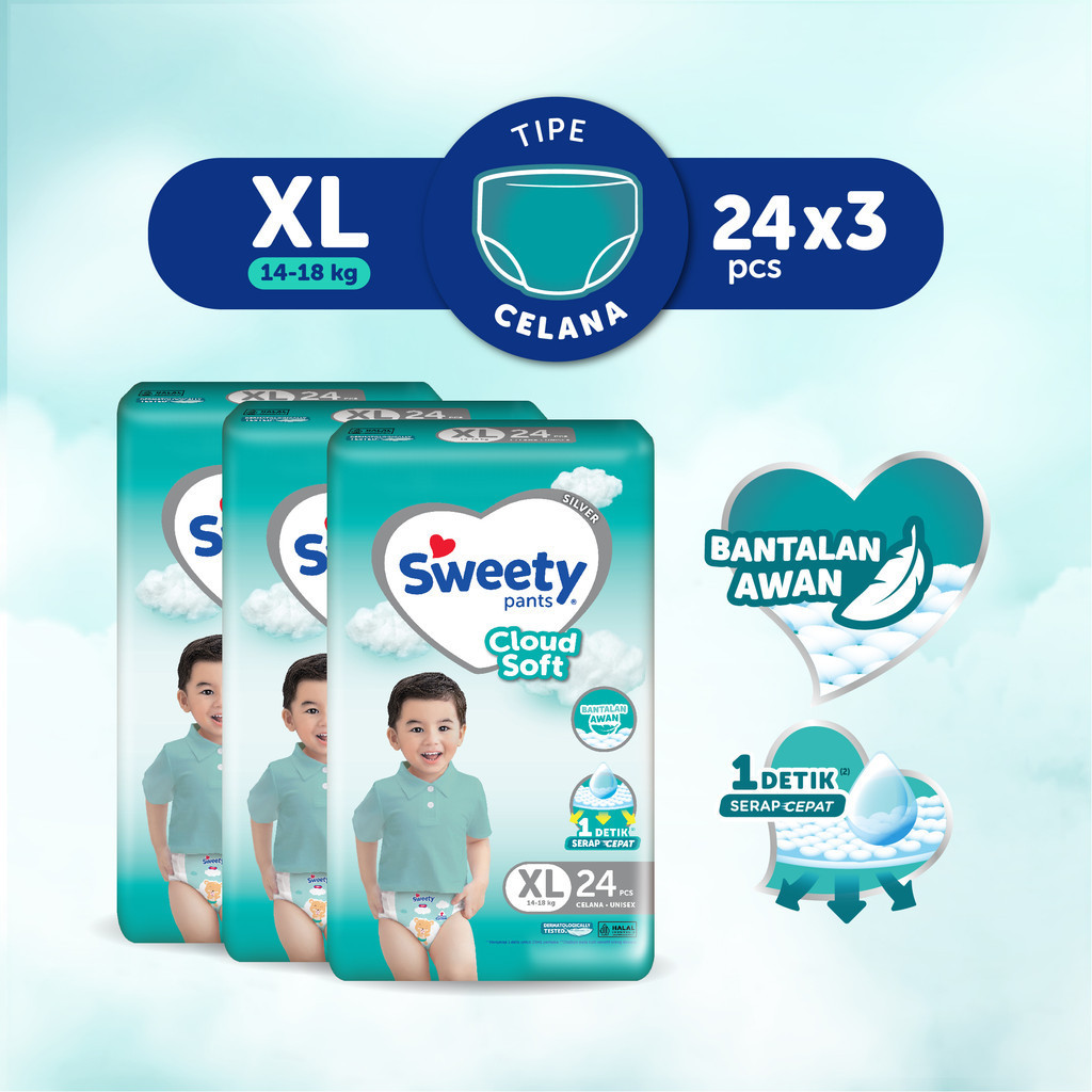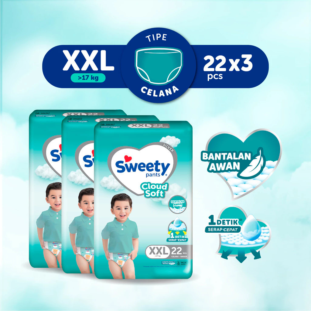 Paket 3 Ball Sweety Silver Pants Cloud Soft NB-S40 S38 M32 L28 XL24 XXL22 Popok Celana Baby Diapers X3