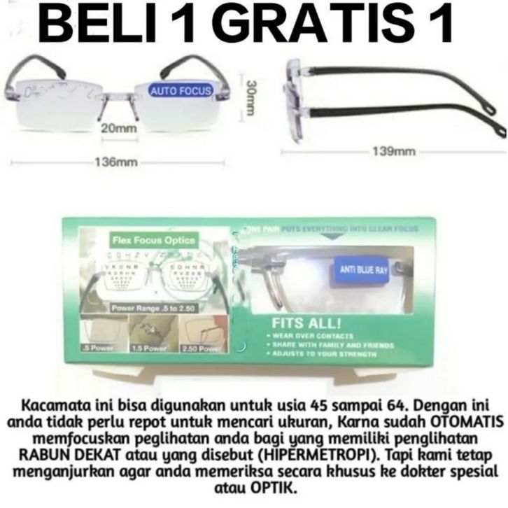 ( PROMO BELI 1 GRATIS 1 ) Kacamata baca super auto fokus| Kacamata baca plus | Kacamata baca wanita| Kacamata baca pria