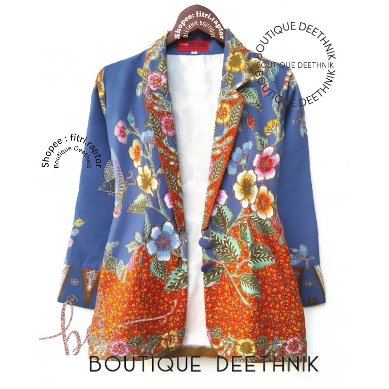 BAJU BATIK MODEL BLAZER BATIK MOTIF BUNGA WARNA BIRU