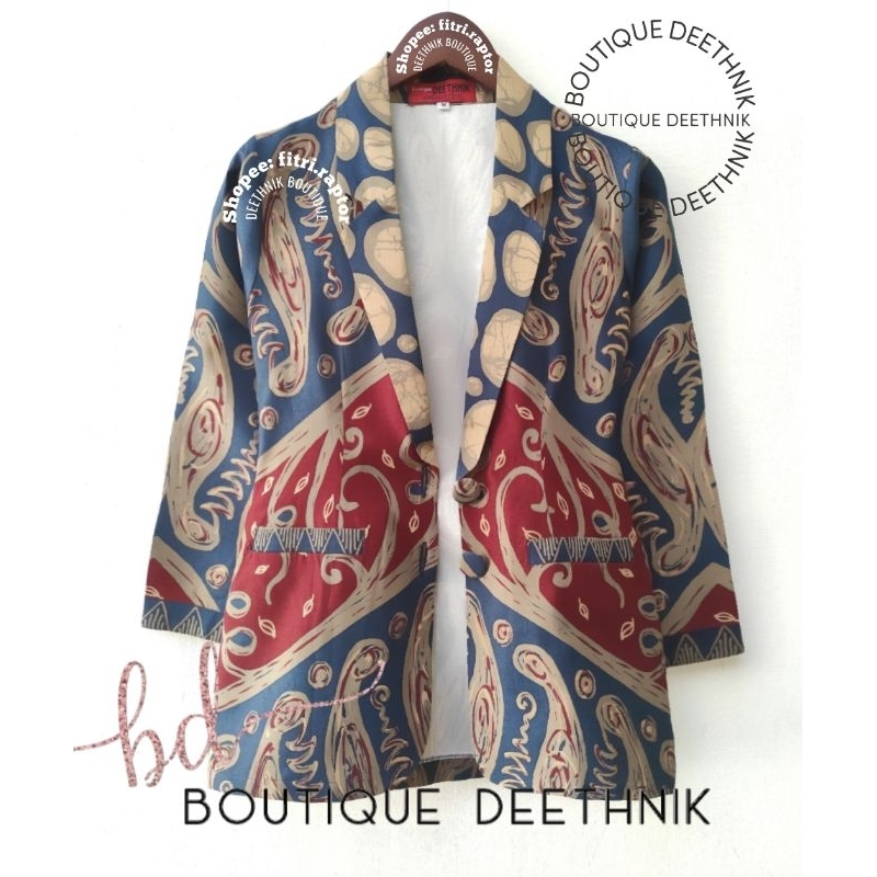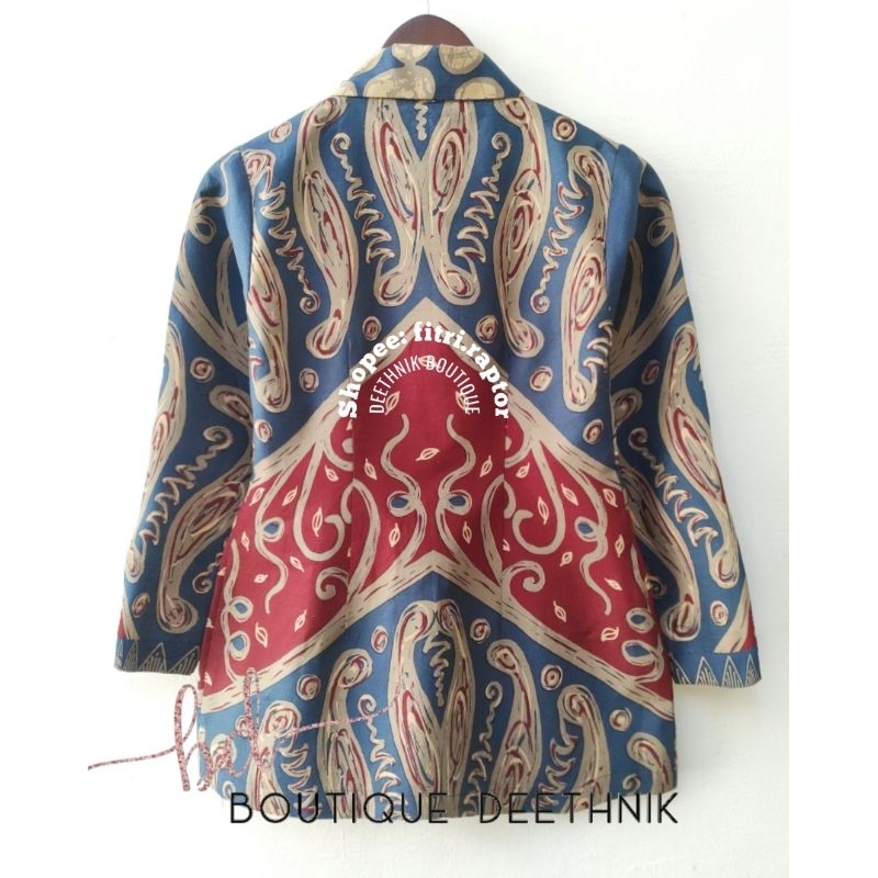 BAJU BATIK MODEL BLAZER WARNA MARON MIX NAVY