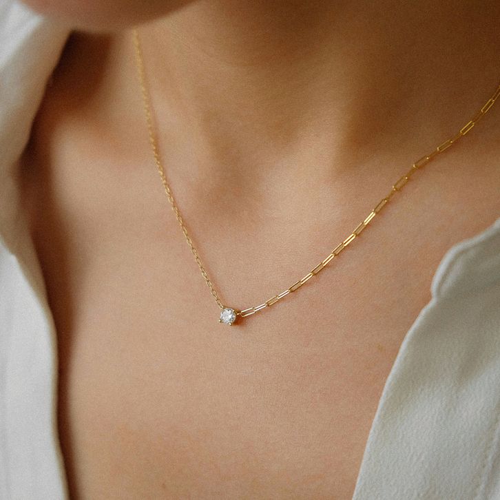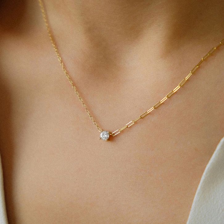 Mix Chain Solitaire Zirconia Dainty Necklace — Plated S925 Sterling Silver Kalungg AntiKarat