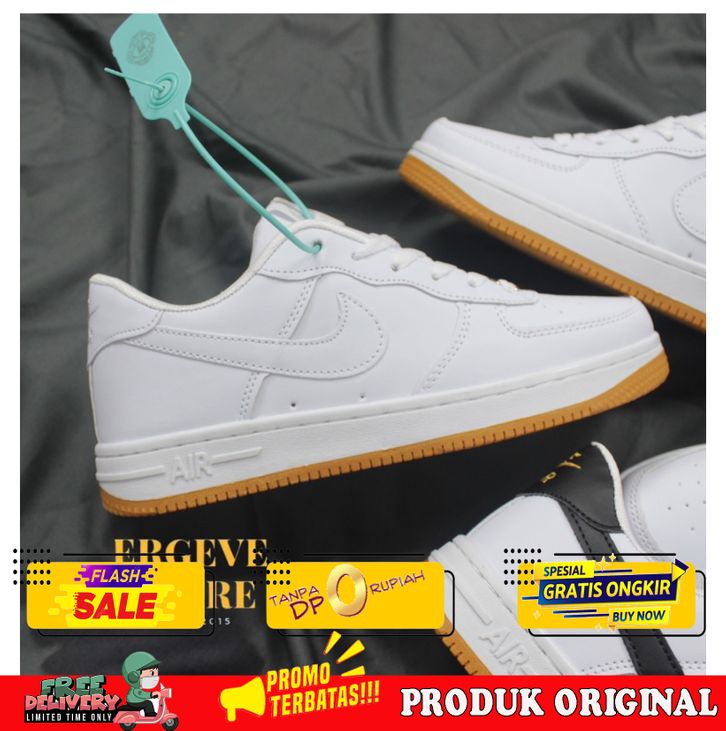 BARU SEPATU PUTIH POLOS AIR FORCE 1 LV8 MID LOW FULL WHITE GUM WANITA PRIA