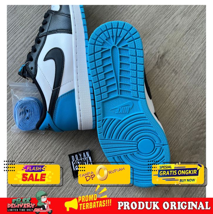 BARU SEPATU JORDAN 1 RETRO LOW OG BLACK DARK POWDER BLUE - 14091