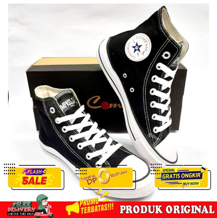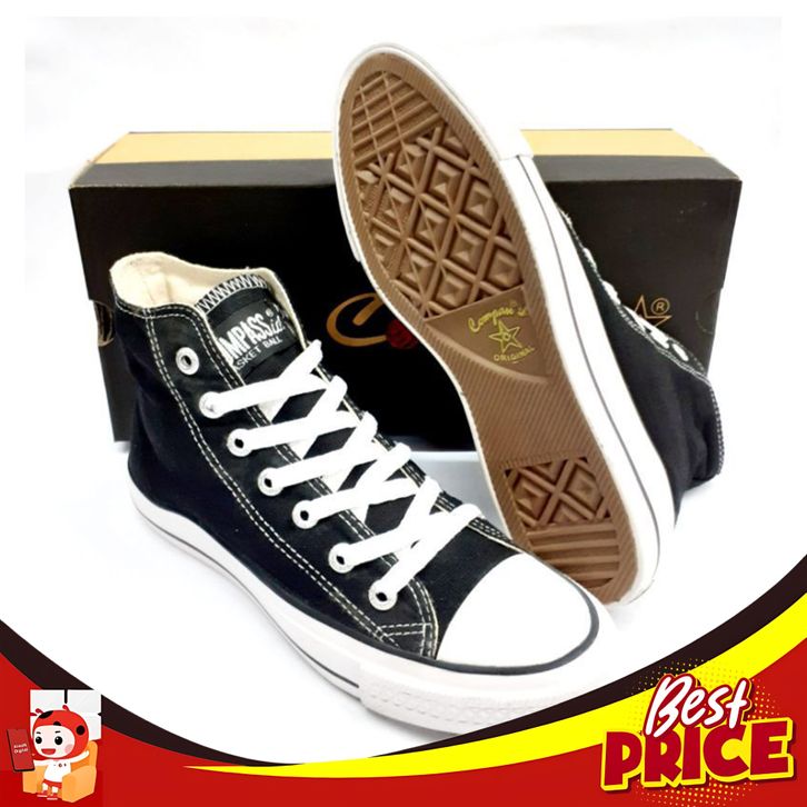 BARU SEPATU SEKOLAH COMPASS HI ALECIO ID PRIA WANITA HITAM PUTIH HIGH TINGGI BLACK WHITE BASKET BALL