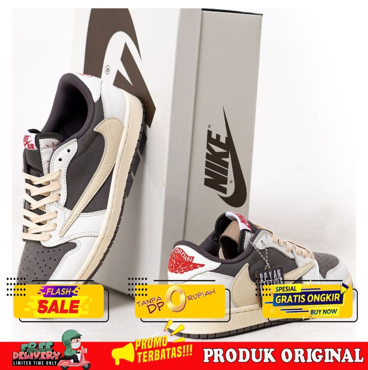 BARU SEPATU PRIA TRAVIS SCOTT X JORDAN 1 LOW-SAIL/UNIVERSITY RED - 13999