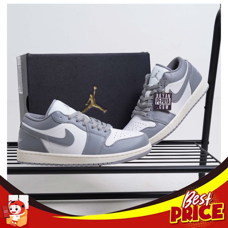 BARU SEPATU PRIA JORDAN 1 LOW "VINTAGE GREY" STEALTH/SAIL/WHITE 14153
