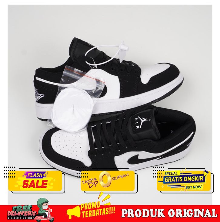 BARU SEPATU NIKE AIR JORDAN 1 LOW BLACK WHITE HITAM PUTIH