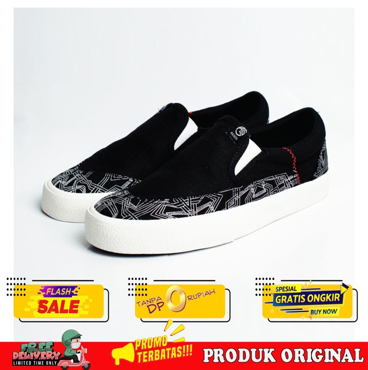 BARU RAINGEL ELEKTRON - SEPATU SLIP ON LOCAL BRAND - BLACK WHITE