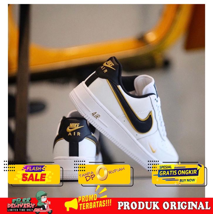 BARU SEPATU KASUAL AIR FORCE 1 WHITE BLACK GOLD