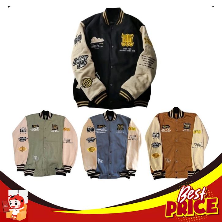 BARU JAKET VARSITY BASE BALL FULL BODRIL APLIKASI 3D PREMIUM PRIA WANITA UNISEX HIGH QUALITY