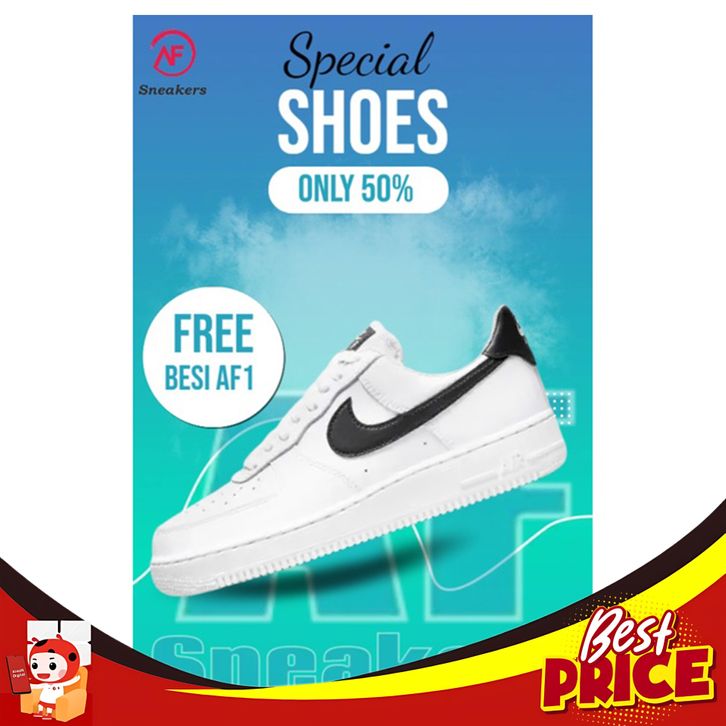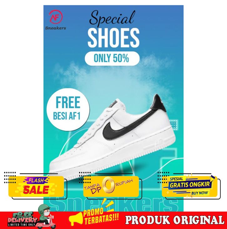 BARU SEPATU PREMIUM NIKE AIR FORCE1'07 PRIA DAN WANITA PUTIH LIST HITAM