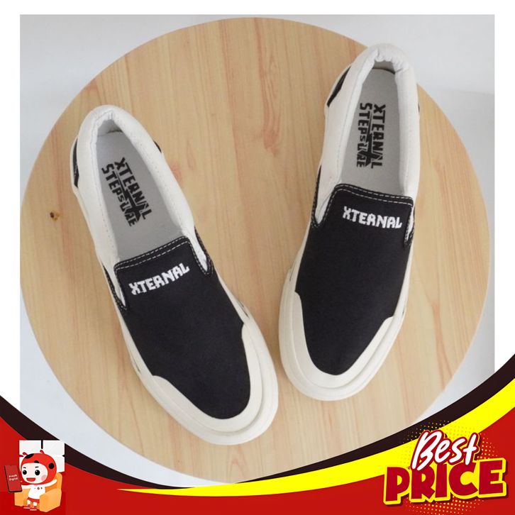 BARU SEPATU PRIA WANITA SLIP ON HERMOSO XTERNAL MIDDLE WHITE BORDIR HF ORIGINAL