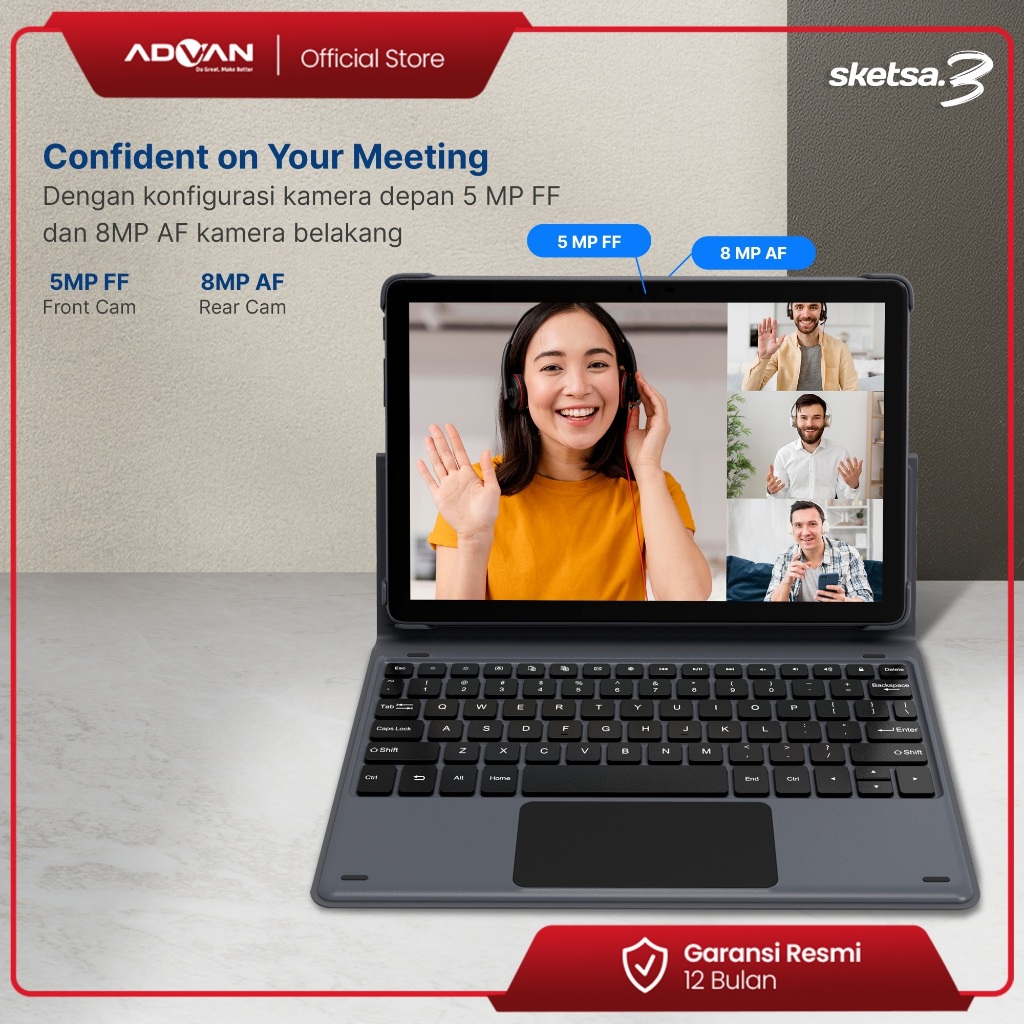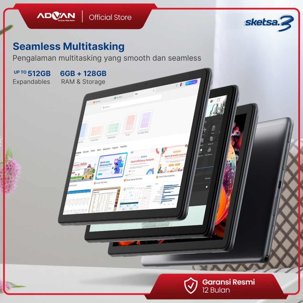 Advan Tab Sketsa 3 Layar 10.1" 128gb+6gb Tiger T606 Android 13 Dual Sim Card Free Keyboard & Stylus Pen