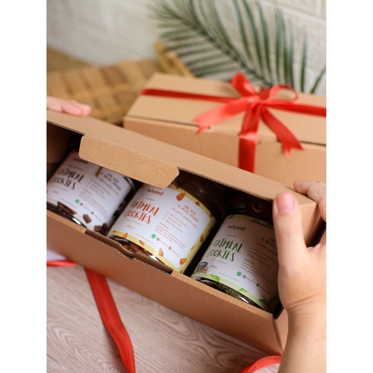 HAMPERS LEBARAN KUKIS KADO PARSEL OATMEAL COOKIES 3 TOPLES FREE KARTU UCAPAN + PITA + BUBBLE WRAP LUCKYBITE