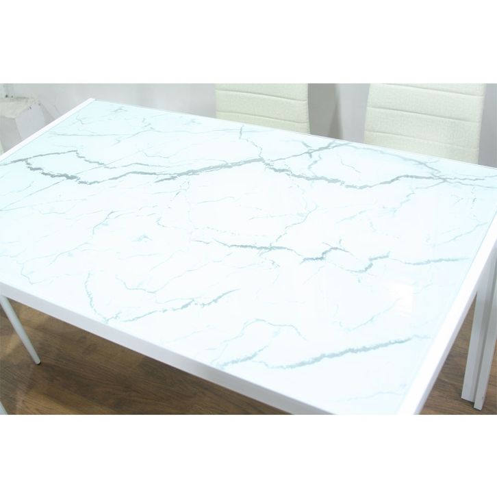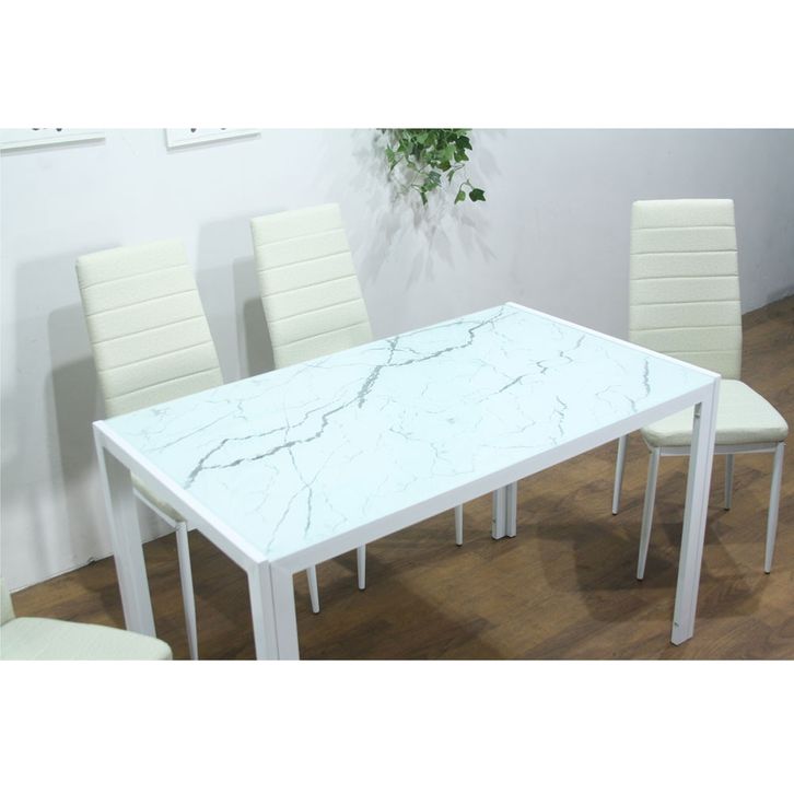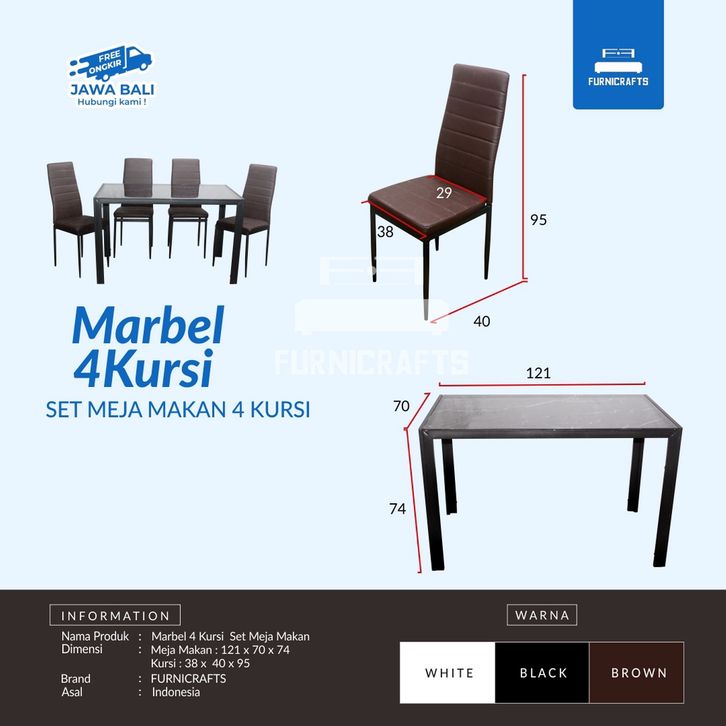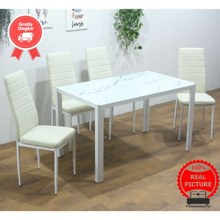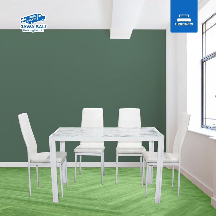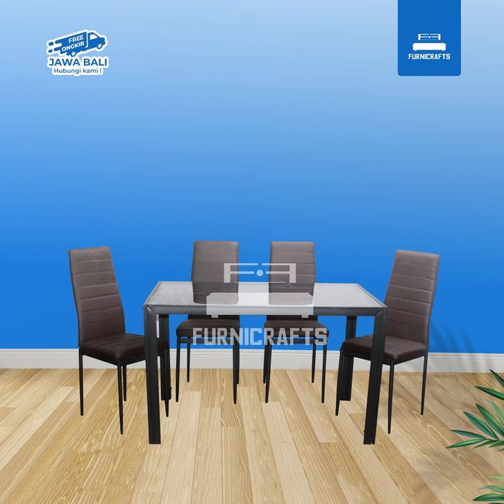 MEJA MAKAN SET BESI KACA + 4 KURSI MARBEL DT
