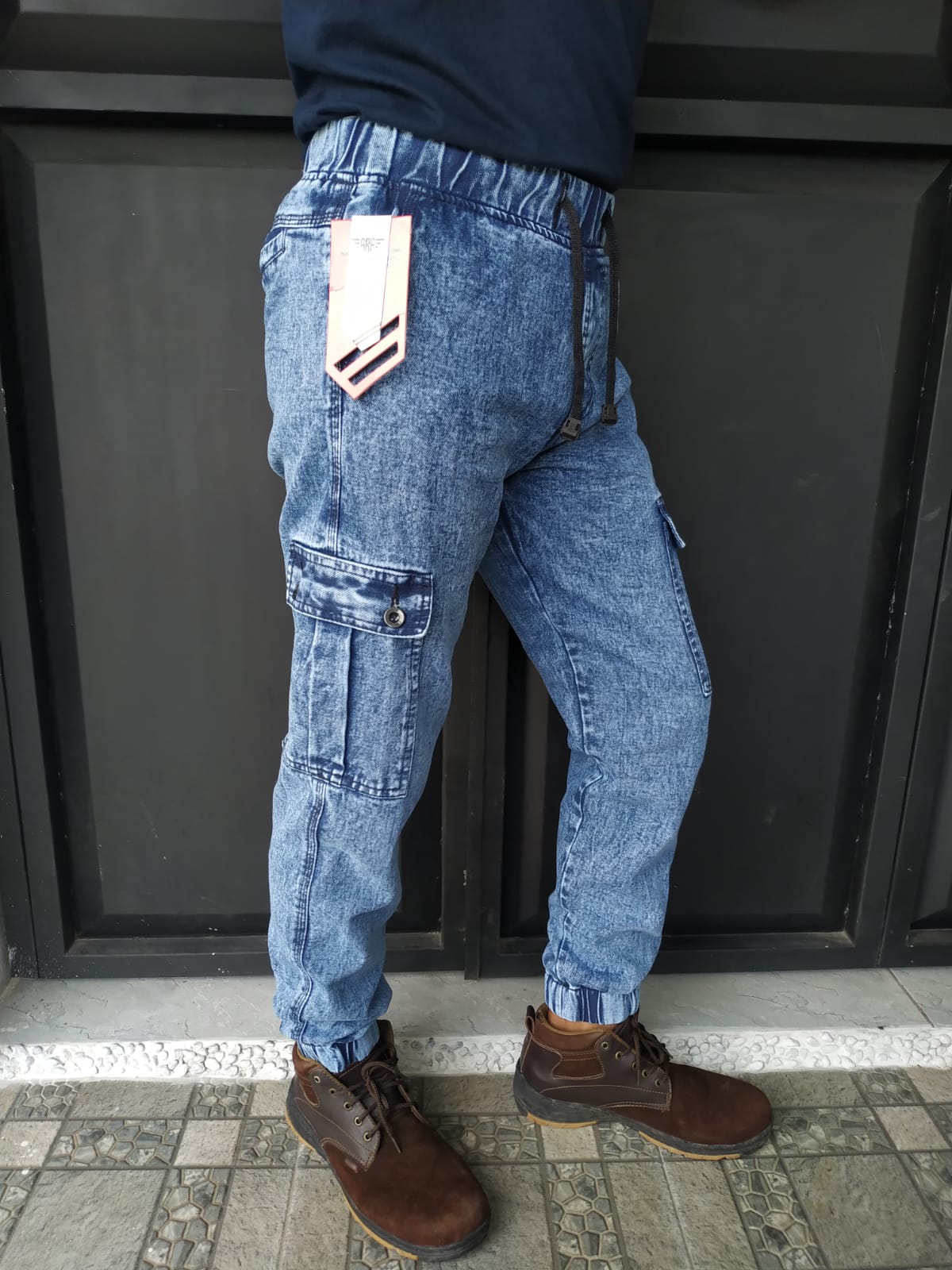 Celana Jeans Jogger Cargo Panjang Pria – Denim Kargo Casual Santai Kekinian