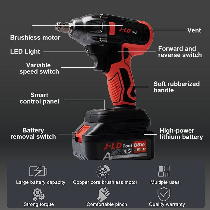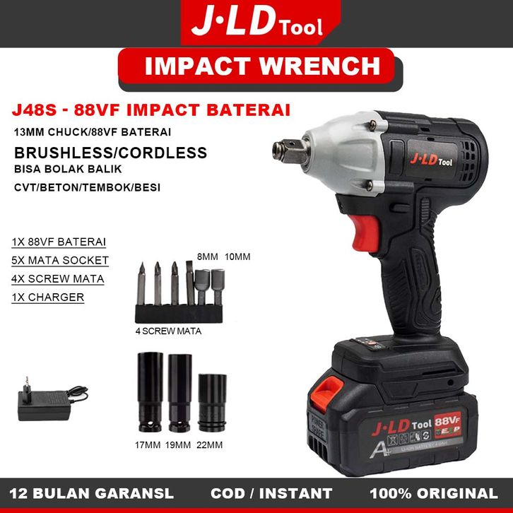 MESIN BOR PEMBUKA BAUD BAUT JLD 13MM IMPACT WRENCH BRUSHLESS CORDLESS MESIN BOR IMPACT WRENCH 88VF BATERAI IMPACT