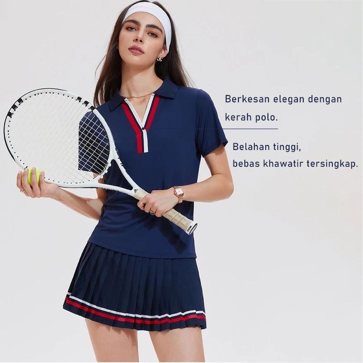 Polo Shirt Dan Skort Olahraga Tennis Wanita Cocok Padel Golf Baju Padel Anti Keringat Baju Olahraga Padel Outfit Padel