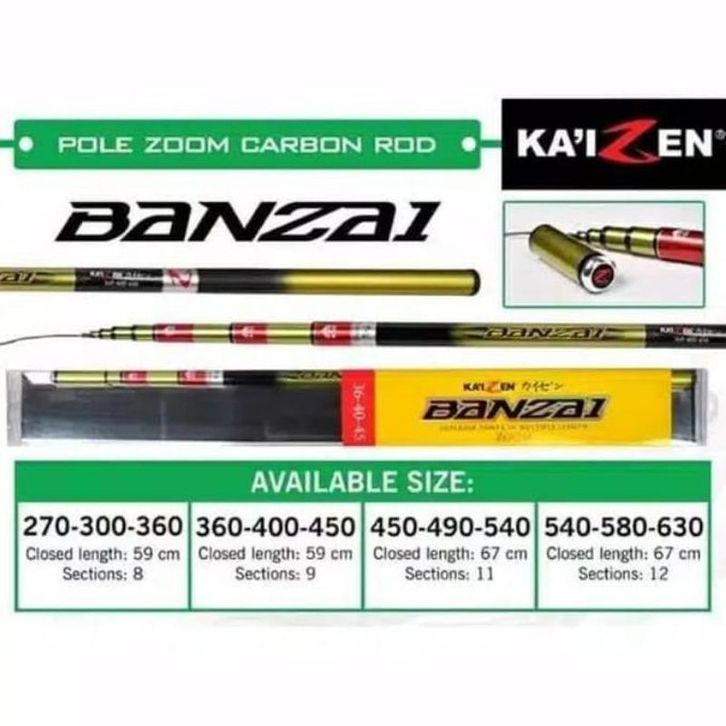 Joran Tegek Kaizen Banzai | Carbon Rod | Zoom Pole | 1 joran bisa 3 ukuran panjang | Pilih ukuran