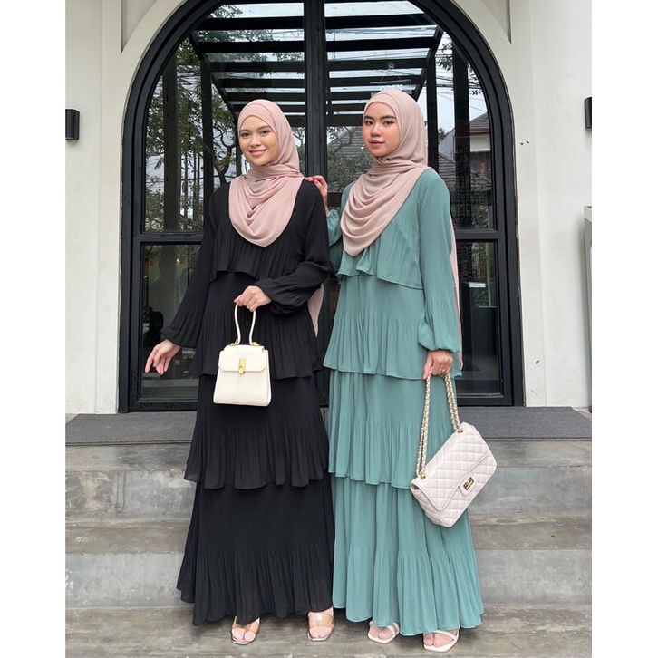 DRESS WANITA GAMISS PISKET BAHAB CERUTY BABYDOLL ELEGAN SIMPLE BAJU LEBARAN KEKINIAN TERBARU KAFTAN ABAYA